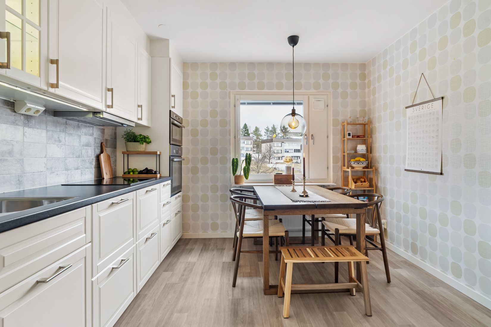 Här erbjuds en ljus och välplanerad trerumslägenhet på Bågevägen 23B, belägen högst upp i huset för ett bekvämt och ostört boende. Planlösningen är genomtänkt med öppna, sociala ytor som skapar en trivsam atmosfär. Köket är smakfullt utformat med fina materialval och har gott om plats för en matgrupp.