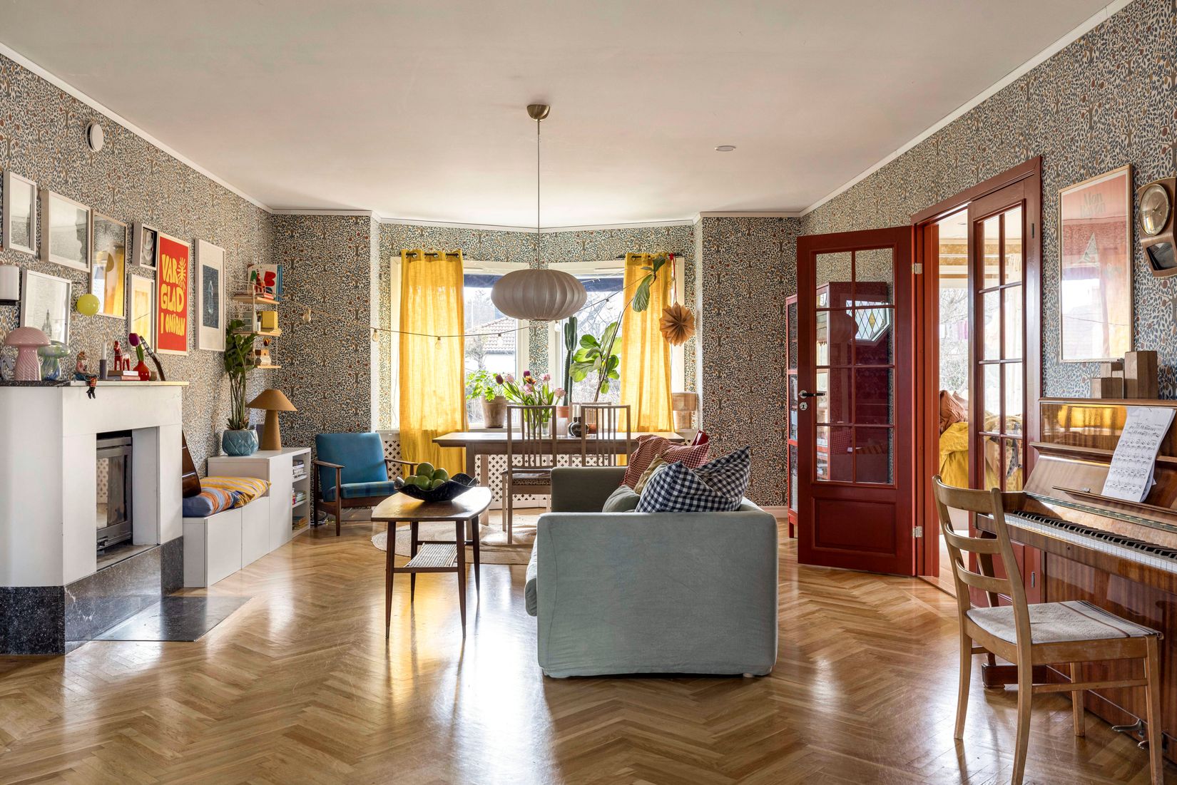 De fantastiska originaldetaljerna berättar husets historia med stolthet: speglade dörrar, ett imponerande trapphus med ett blyinfattat fönster, öppen spis med insats, fiskbensparkett och vackra brädgolv som tillsammans skapar en tidlös karaktär. Huset erbjuder generösa ytor för både vardag och fest. De sociala rummen är stora och inbjudande – perfekta för stora middagar eller kalas för barnens alla vänner. Här finns fem sovrum som ger gott om plats för både familj och gäster. Utöver detta väntar en inspirerande ateljé på vinden, en plats för skapande och lugn, samt ett extra sovrum och ett ytterligare vardagsrum i källaren som ger huset en flexibel och rymlig planlösning.