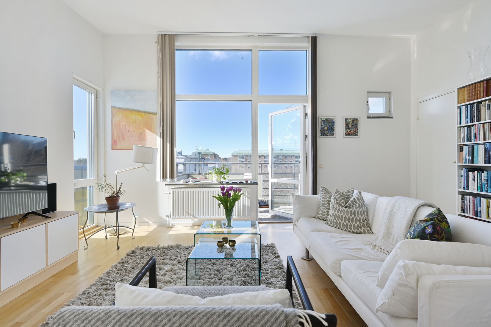 Välkommen till en ljus och välplanerad bostad högst upp i huset - ett läge som ger både avskildhet och ett härligt ljusinsläpp. Här möts du av en genomtänkt planlösning med sociala ytor, generös takhöjd och en rymlig terrass i västerläge som förlänger bostaden under årets varmare månader.