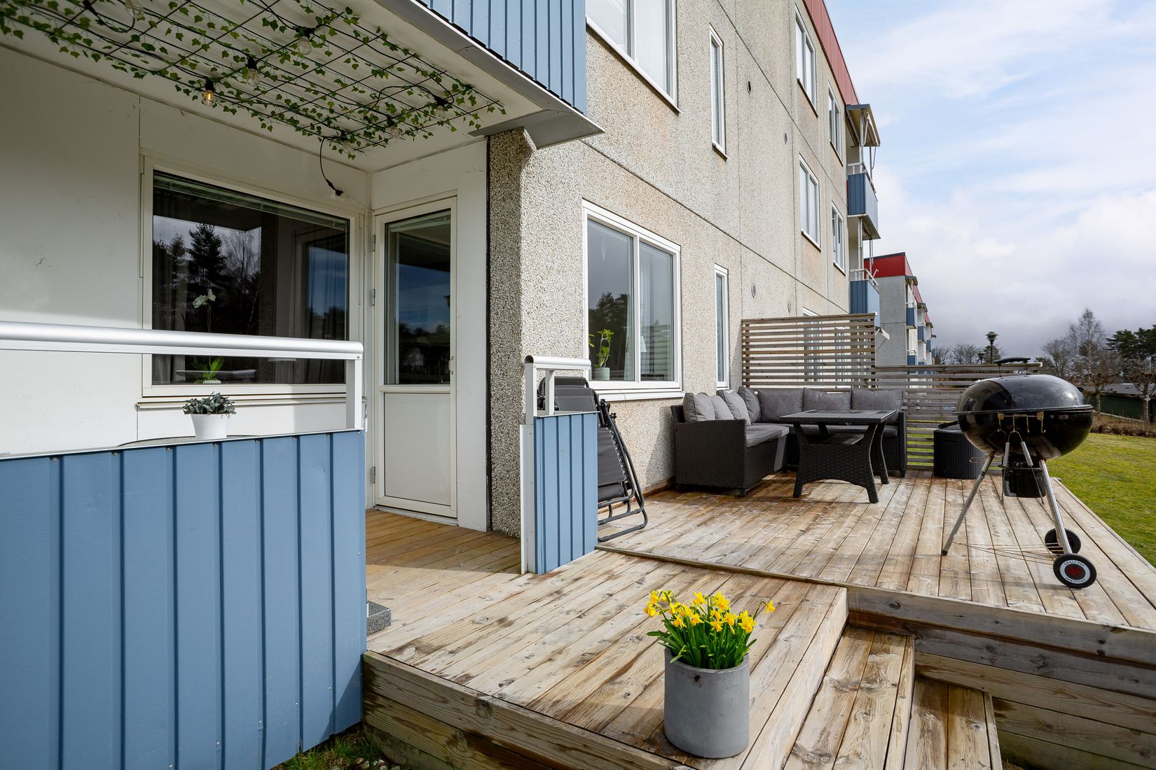 UNIK möjlighet till en perfekt planerad bostadsrätt på markplan med egen uteplats i anslutning till bostaden. I ett av Nässjös mest populära bostadsområden ges du nu tillfället att bosätta dig med lugnet runt om dig och närhet till natur. Lägenheten håller en genomgående god standard och fördelar sig på yteffektiva 80 kvm. Här har du också tillgång till tvättmaskin vilket underlättar vardagen. Det bästa är ändå uteplatsen som nås från lägenheten i form av större trädäck med perfekt solläge.