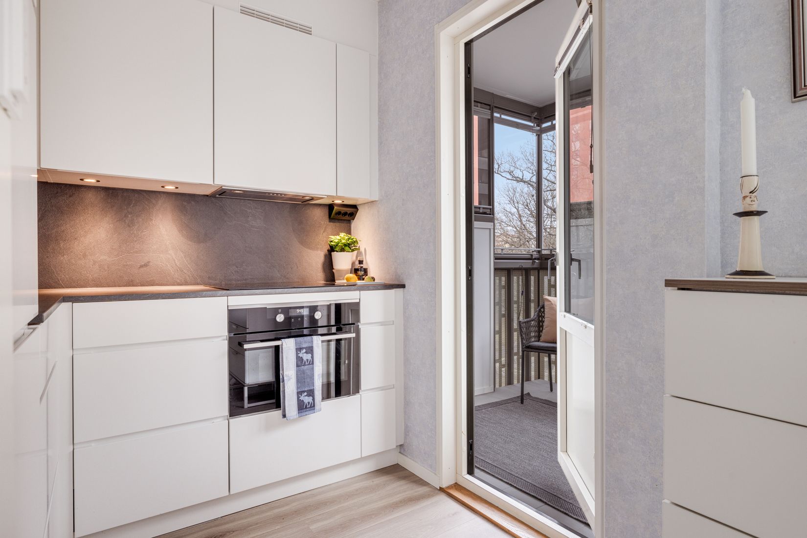 Välkommen till en ljus och fin lägenhet med inglasad balkong. Köket från 2021 är välplanerat med mycket plats till förvaring i skåp och lådor. Integrerad kyl/frys och diskmaskin, induktionshäll med inbyggd kombinerad ugn/micro. I anslutning till köket finns matplatsen och vardagsrummet som erbjuder plats för soffa, soffbord och TV-möbel. Avgränsat med en smart bokhylla på hjul finns plats för säng med sängbord och skrivbord eller byrå för den som önskar. Bostadens badrum har badkar, handfat med spegel ovanför och wc. Hallen har en hel vägg med garderober bakom snygga skjutdörrar med spegelglas. Utöver bostadens förvaringsmöjligheter i skåp och skjutdörrsgarderob finns ett förråd.