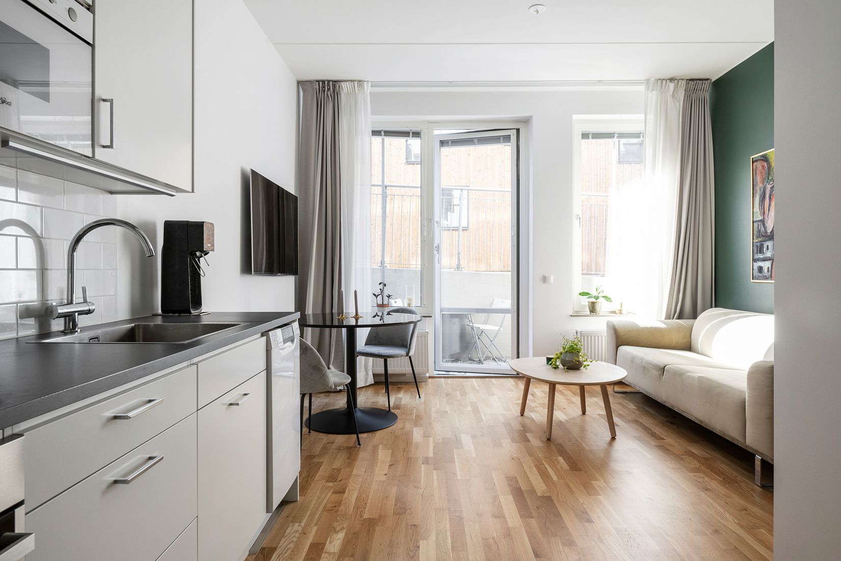 Välplanerad och stilren 1,5 rok om 32 kvm med tidlösa materialval, mysig uteplats och en smart avskild sovalkov. Bostaden bjuder på ett härligt ljusinsläpp från stora fönsterpartier och en generös takhöjd som skapar en luftig och rymlig atmosfär. Den genomtänkta planlösningen gör det enkelt att möblera för både vardag och sociala tillfällen, med plats för middagar och umgänge utan att tumma på den privata sovdelen. Köket är praktiskt utformat med god förvaring och utrustat med diskmaskin. I hallen finns smidig förvaring via hatthylla och garderober. Badrummet är smakfullt inrett med exklusiva tillval i form av marmorliknande kakel och klinker samt behaglig golvvärme – en uppskattad detalj som endast ett fåtal bostäder i föreningen erbjuder.