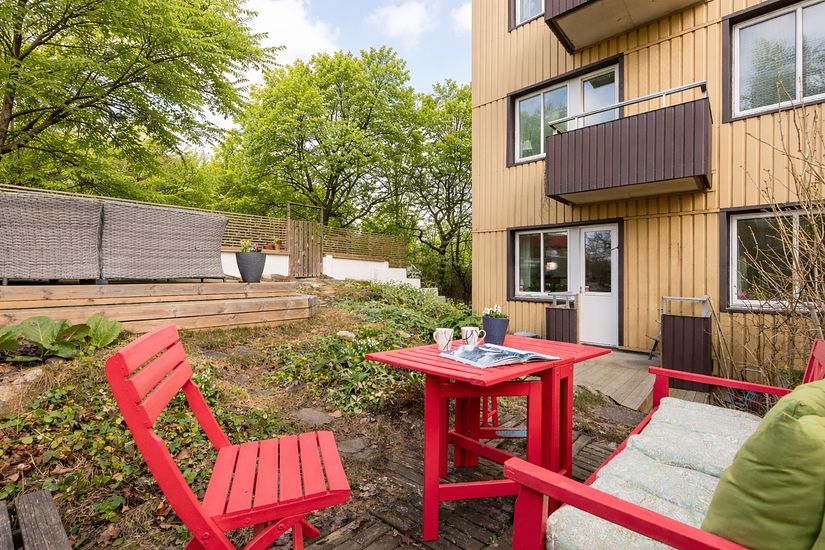 En av bostadens verkliga höjdpunkter är balkongen med utgång till trädgård. Detta unika inslag skapar en känsla av att bo i hus, där du enkelt kan kliva ut och njuta av grönskan, odla eller bara koppla av i en privat och naturnära miljö. Den lummiga omgivningen ger ett insynsskyddat och harmoniskt läge som passar perfekt för dig som söker ett boende med det lilla extra.