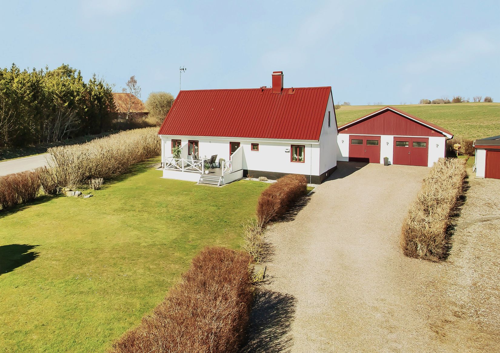 Fastigheten ligger på fritt och vackert läge med fin utsikt ut över kuperat landskap. Söderut nås kusten med ett pärlband av pittoreska byar som erbjuder härliga stränder från Mossbystrand och västerut, småbåtshamn och golf i Abbekås och en unik cykelled som följer hela Sydkusten ända från Simrishamn till Trelleborg och vidare mot Helsingborg . Skurups tätort ligger endast några km bort eller 4-5 min. bilväg bort. Alternativt en kort busstur med buss 305 som stannar 100 meter från fastigheten. Här finns skolor och förskolor till barnen, idrottshallar, friluftsbad och mycket grönområden. Ett bra butiksutbud finns tillsammans med matställen och all service som behövs för en bekväm vardag. Svaneholms slotts- och rekreationsområden ligger alldeles intill och med bil eller tåg nås smidigt Malmö och Öresundsregionen på mindre än 30 minuter.