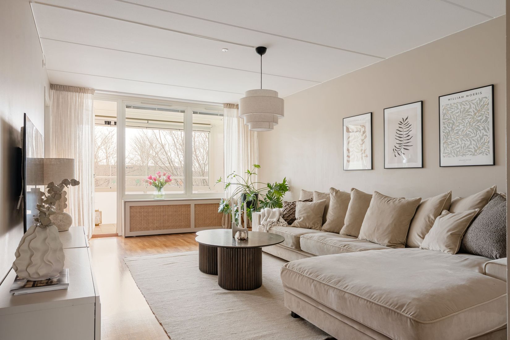 Planlösningen är både funktionell och social, med generösa sällskapsytor, två bra sovrum och gott om förvaring. Här finns alla förutsättningar för ett bekvämt boende, oavsett livssituation.