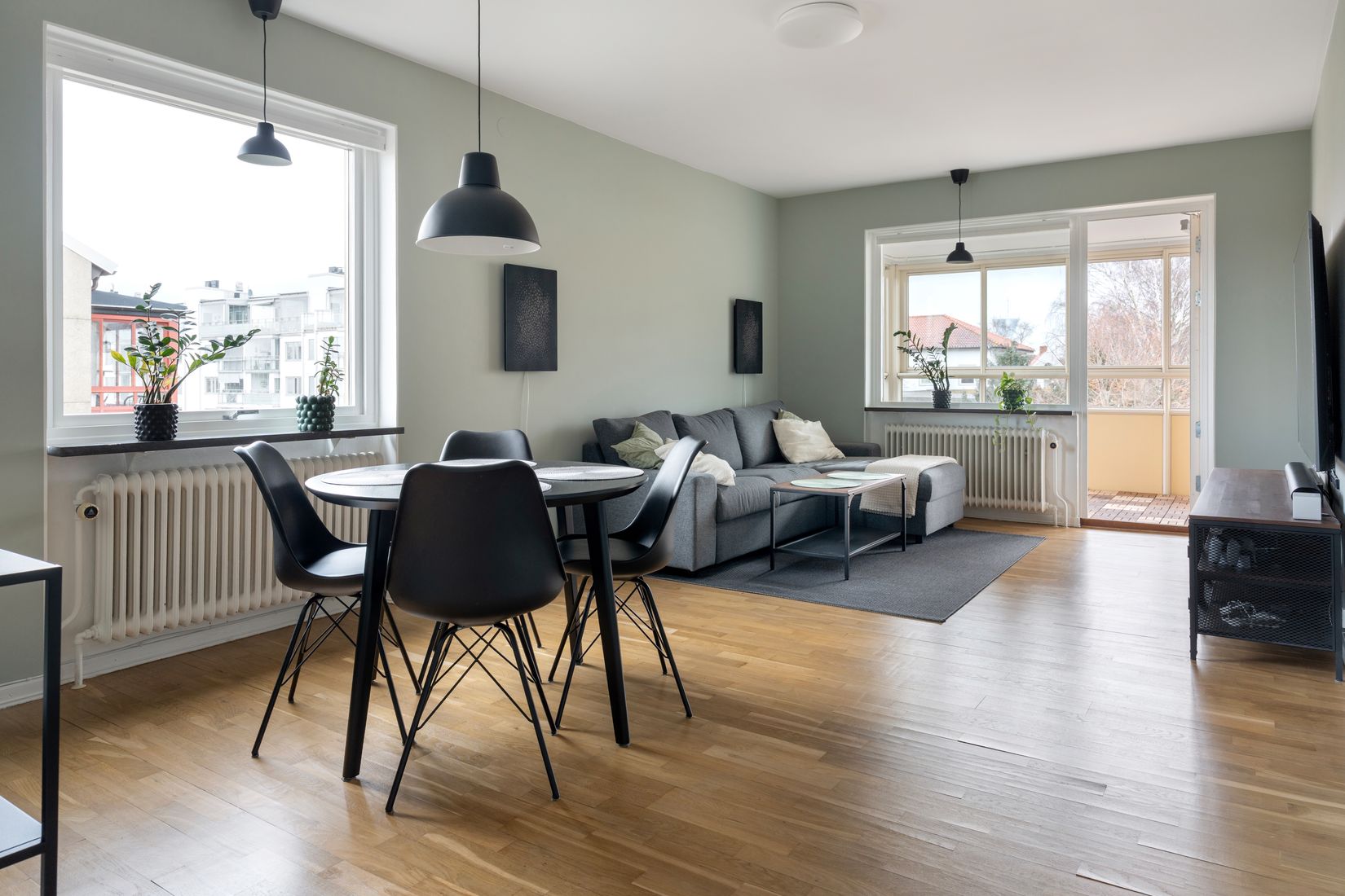 Bostaden är ljus och genomtänkt med inbjudande ekparkett, stilrent kök och generösa ytor för socialt umgänge, inklusive en inglasad balkong för extra njutning. Parkettgolvet på nedanvåningen är nyslipat och nästan hela lägeheten är nyligen ommålad. Här får du en perfekt balans av bekvämlighet och stil, med nära till såväl grönområden som stadens puls. - Välkommen på visning!