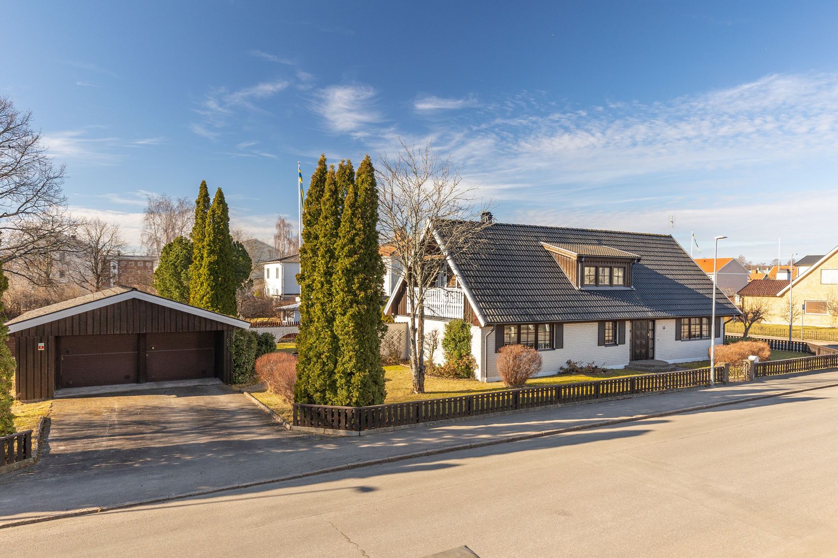 Välkommen hem till ett trivsamt och välplanerat hem med gott om plats för hela familjen, både inne och ute. Här möts du av en inbjudande atmosfär, generösa sällskapsytor och en lummig trädgård i soligt läge. Utomhus väntar en lättskött och solig trädgård med flera uteplatser, både under tak och i det fria. Här finns gott om plats för lek, odling och umgänge. Till fastigheten hör även ett praktiskt dubbelgarage. Detta är ett hem som erbjuder både funktion och trivsel med utrymme att växa och njuta i många år framöver.