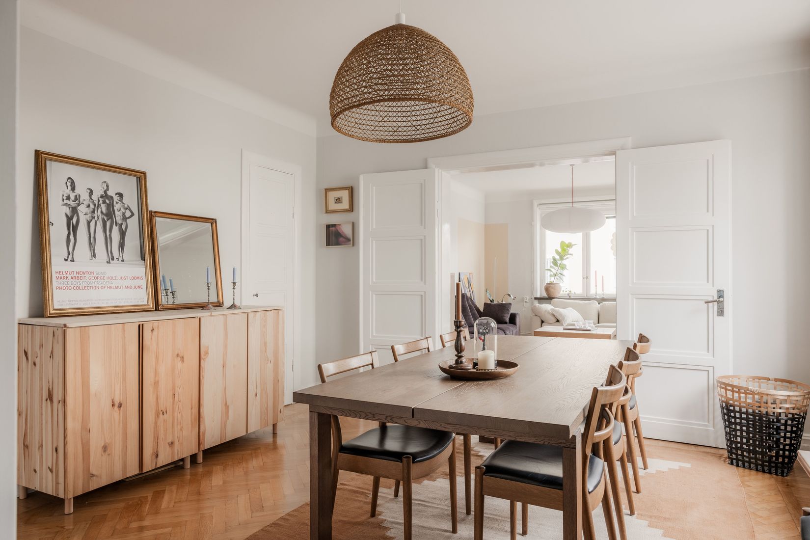 Lägenheten präglas av vackert bevarade originaldetaljer som fiskbensparkett, generös takhöjd och eleganta takrosetter som tillsammans skapar en tidlös och exklusiv karaktär. Det klassiska möter det moderna på ett mycket smakfullt sätt, där varje rum bjuder på sin egen personlighet samtidigt som helheten känns genomtänkt och inbjudande.