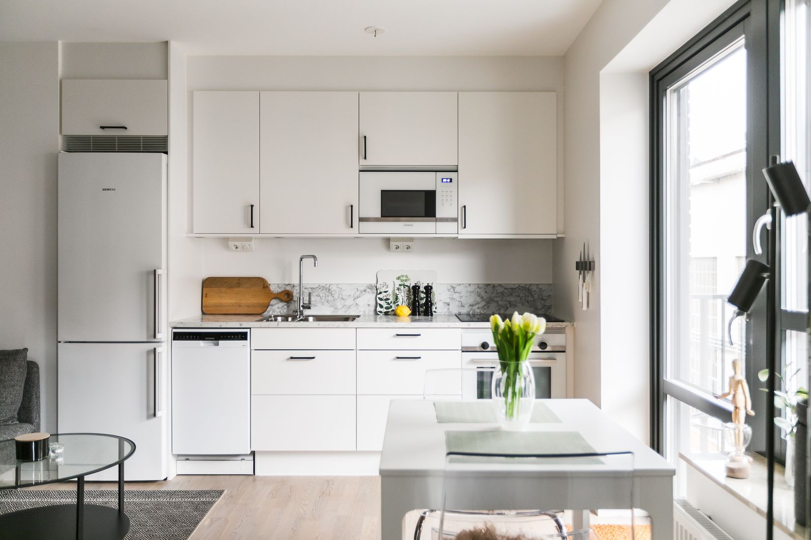 Den öppna ytan mellan kök och vardagsrum ger en social och flexibel miljö, perfekt för både vardagsliv och umgänge. Ljuset strömmar in genom stora fönsterpartier och förstärker den luftiga känslan, samtidigt som balkongen blir en naturlig plats för avkoppling, oavsett om det handlar om en lugn morgon eller en stillsam kväll. Köket går i en modern stil och är utrustat för att möta vardagens behov, medan det helkaklade badrummet erbjuder en fräsch och praktisk utformning med bekväma lösningar.