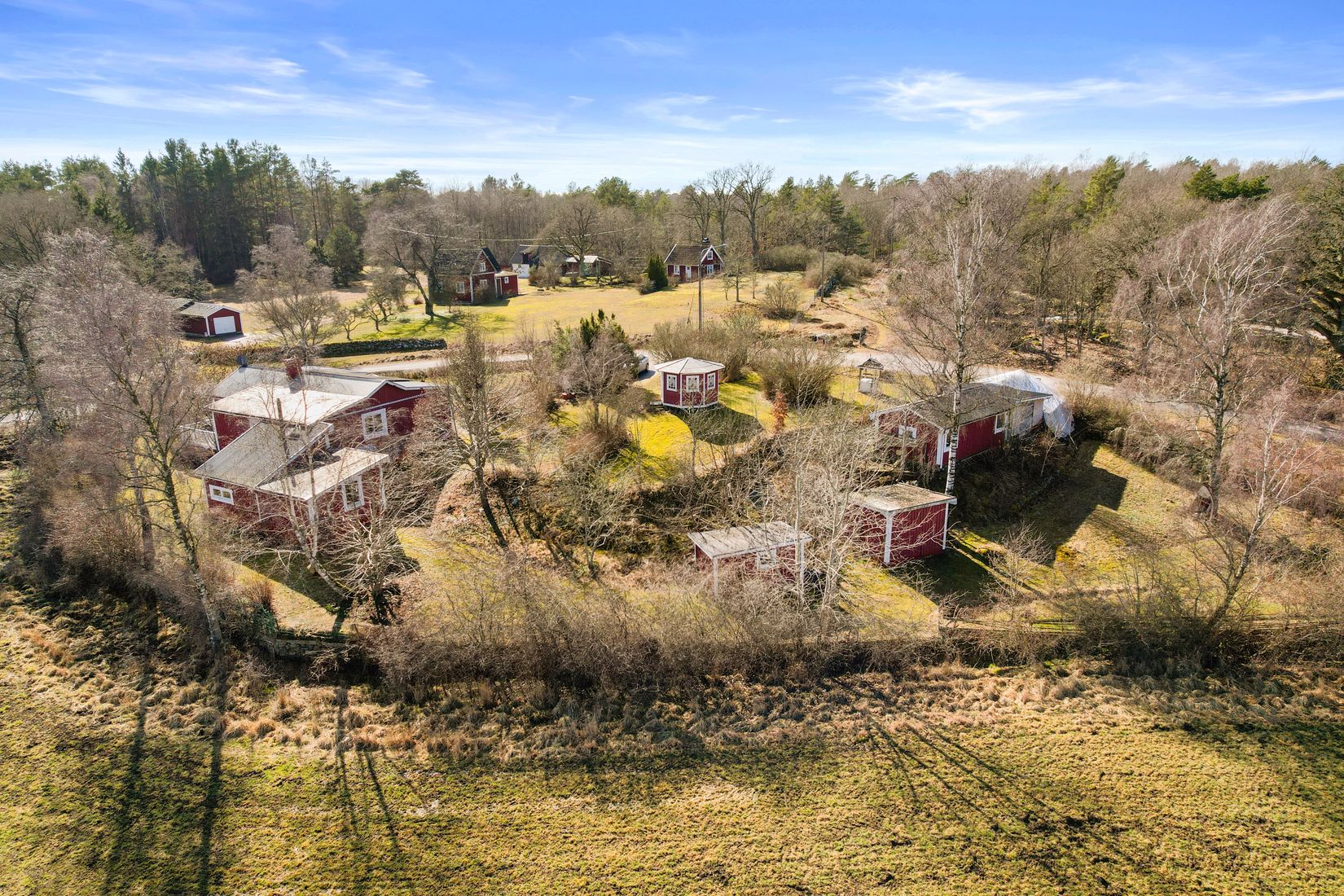 På tomten finns ett enklare garage, förrådsbyggnader samt ett trevligt lusthus. Den varierade tomten i olika nivåer skapar en levande och trivsam utemiljö.