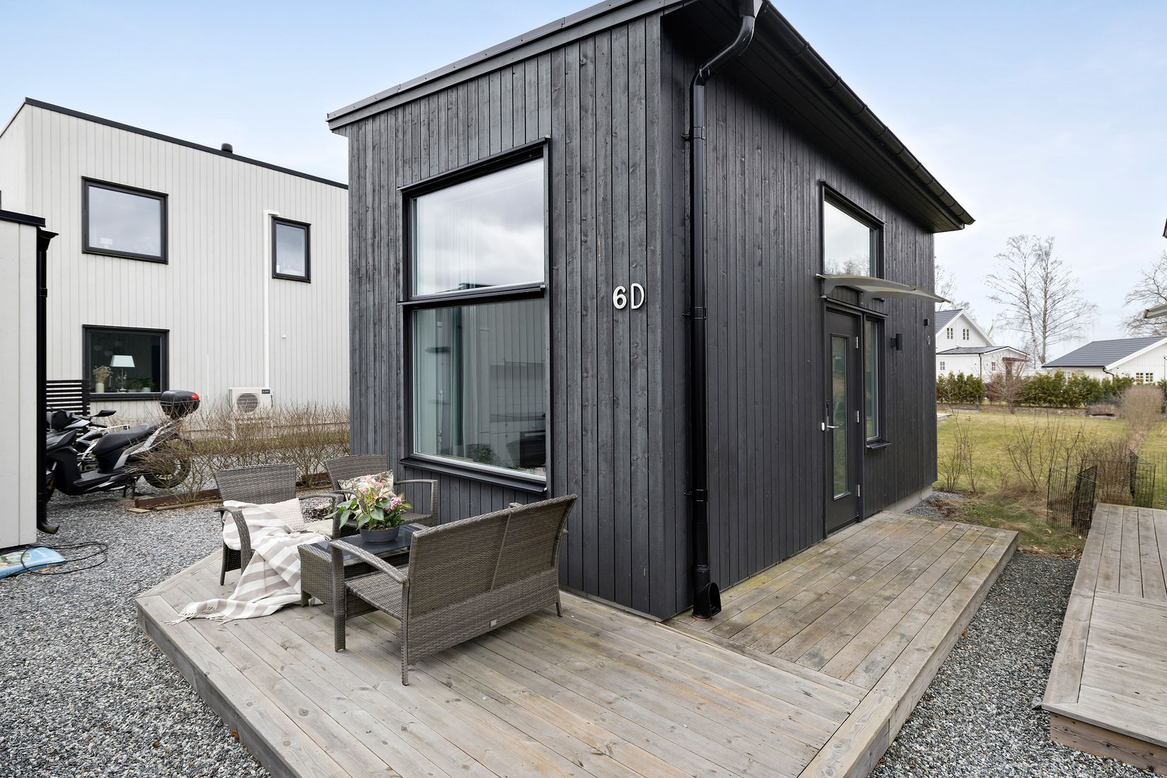 Välkommen till Myntvägen 6D! Här bor du i ett eget, mysigt studiohus med generös takhöjd och ljusa ytskikt. De höga fönstren ger ett härligt ljusinsläpp som skapar en luftig och trivsam känsla.