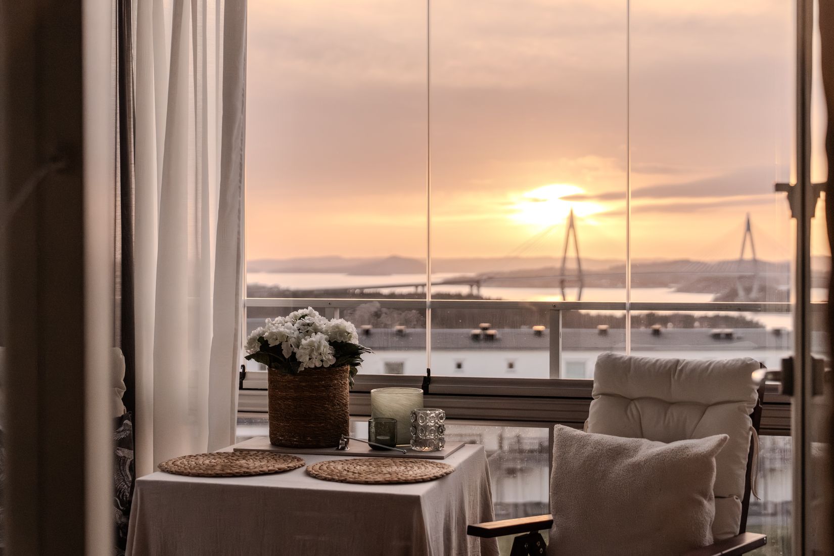 Hemmets verkliga höjdpunkt är den stora balkongen, en perfekt plats för både avkoppling och umgänge. Här kan du njuta av morgonkaffet, långa sommarkvällar och en slående utsikt som ger bostaden det där lilla extra.