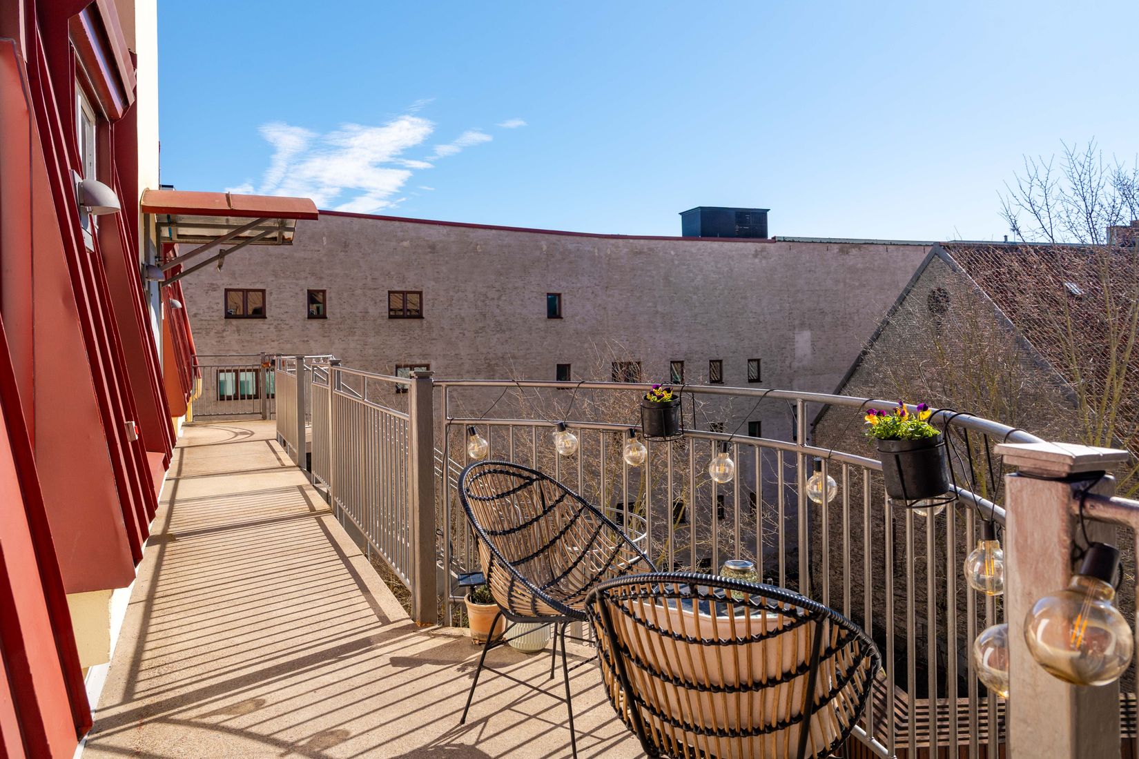 Badrummet är stort och fräscht, med badkar och dusch. Pricken över i:et är nog ändå balkongen som är precis utanför entrén. Riktningen på balkongen är rakt västerut vilket innebär sol från tidig förmiddag till sen eftermiddag - storleken på balkongen ger dig utrymme för ett litet bord med ett par stolar.