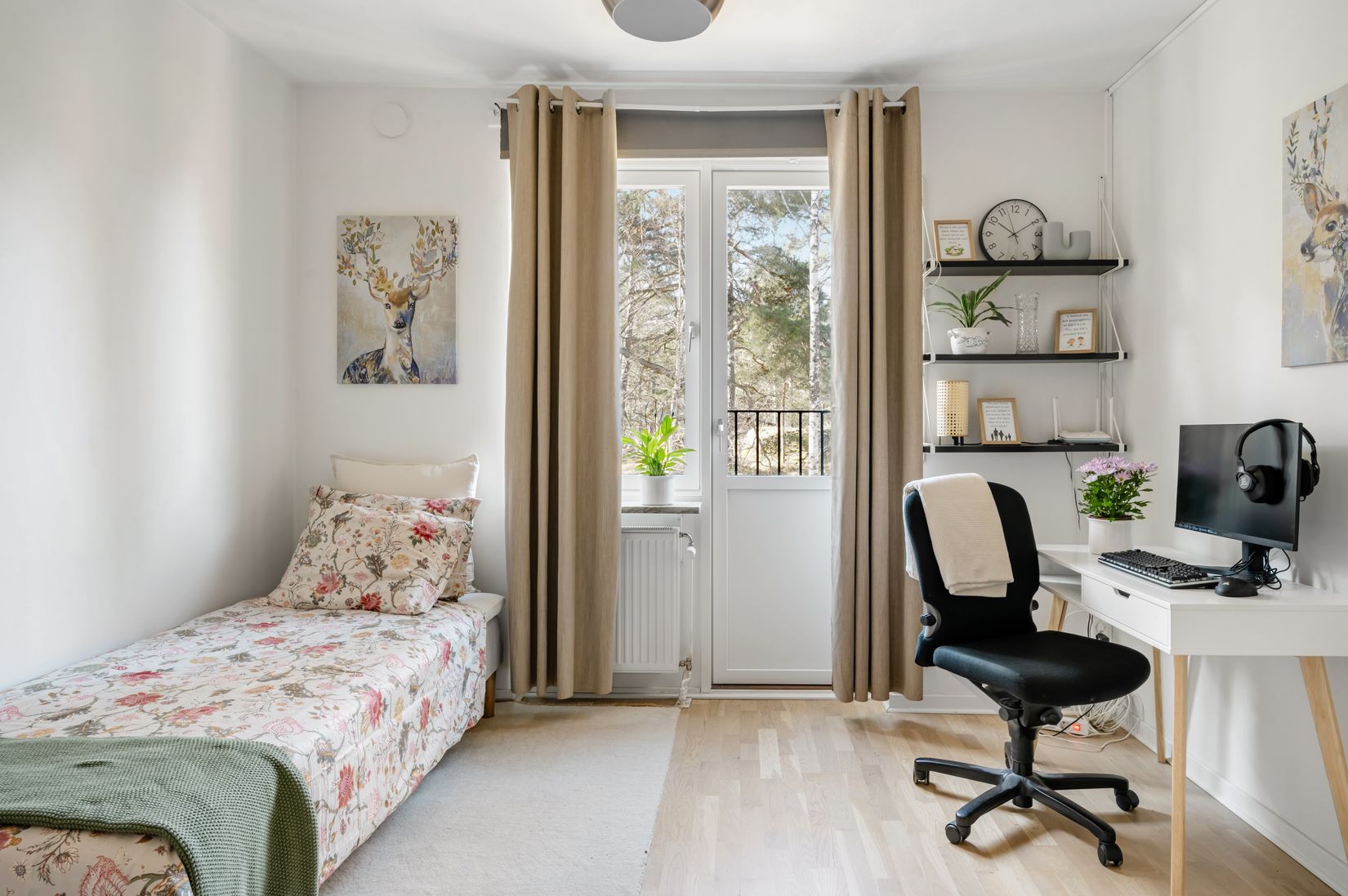 Här bor du i ett lugnt och trivsamt område med närhet till kommunikationer i form av buss som stannar nära huset, och har massvis av härlig natur, gång och cykelbanor att upptäcka. I området har du dessutom nära till flera guldkorn när det kommer till mat. Kanske möter du vännerna ner på torget för unna er sushi hos Cartref eller kolgrill, meze och en och annan karaoke-kväll hos Lokanta eller testa en riktigt bra tunnbrödsrulle på E4-baren – ett säkert kort när tidsbristen infaller! På bekvämt avstånd finns även Mc Donalds samt stora handelsplatsen Västberga med Systembolag, Jysk, Rusta, Normal, apotek och matbutiken Coop.