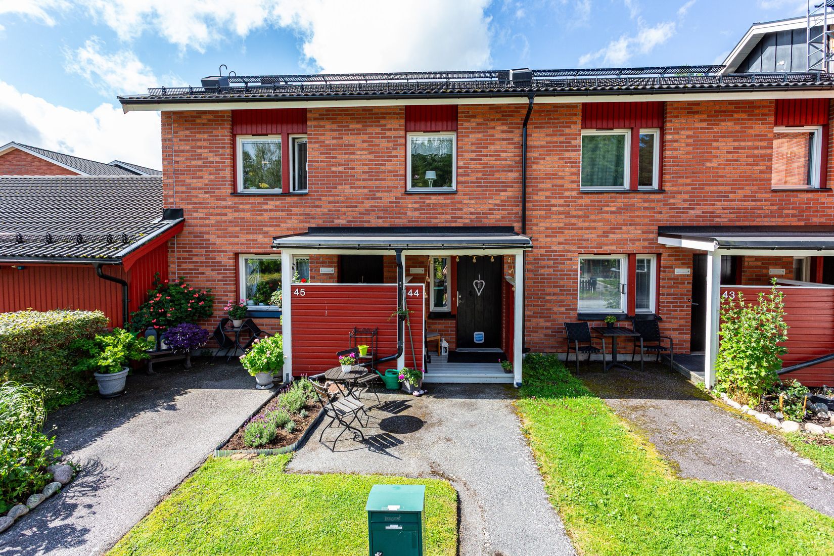 Fräsch 3:a i 2 plan med uteplats och balkong! Bostadsrätten har en öppen och ljus planlösning med 2 rymliga sovrum, vardagsrum med utgång till balkong i sydvästläge, stort kök med inredning i vitt och dusch/wc med tvättmaskin. Till bostadsrätten hör ett förråd i byggnad intill. Välskött förening med gemensamma utrymmen i form av samlingslokal, tvättstuga, dusch/bastu, förråd med trädgårdsredskap mm.