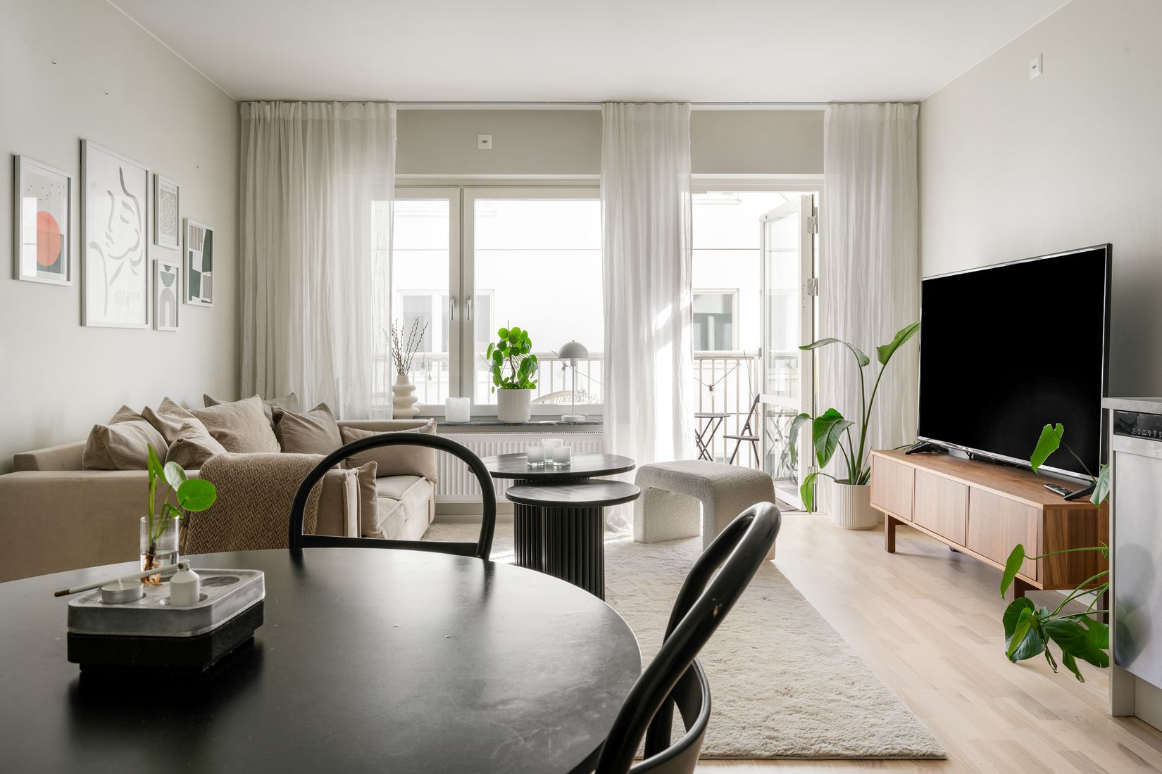 Varmt välkomna till denna välplanerade tvåa på våning 4 med balkong. Lägenheten erbjuder en öppen disponering mellan köksdelen och vardagsrum. Här erbjuds även ett helkaklat badrum med egna tvättmöjligheter samt en balkong som nås från vardagsrummet. Tack vare att bostaden gårdsläge finns minimal insyn och gott om sol på balkongen i söderläge. Rofyllt sovrum med klädkammare som med enkelhet kan användas som kontor. Denna bostad är även uppkopplade med Skanska Smartahem vilket innebär du kan styra utvalda lamputtag, uttag och kontrollera dörrar och fönster via app. Lägenhetsdörr med digitalt kodlås.