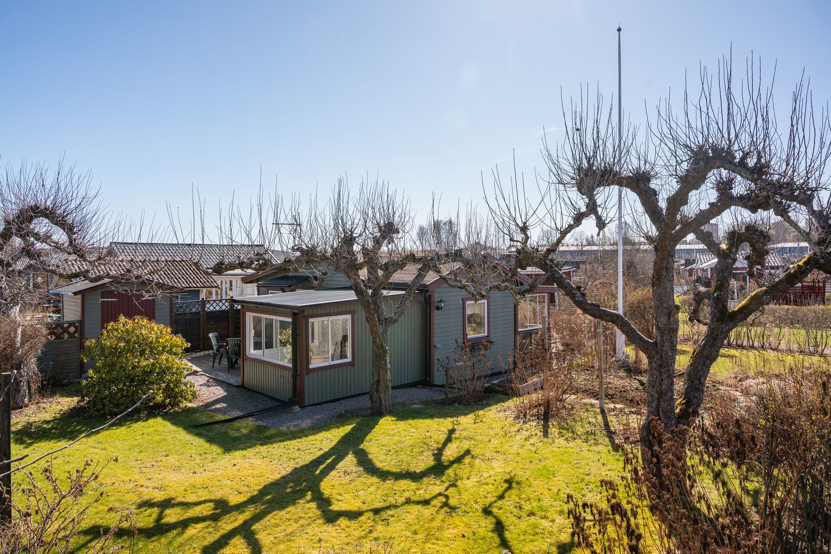 Nu finner ni en trivsam och gemytlig stuga på kolonilott i Fyrbys koloniträdgårdsförening!