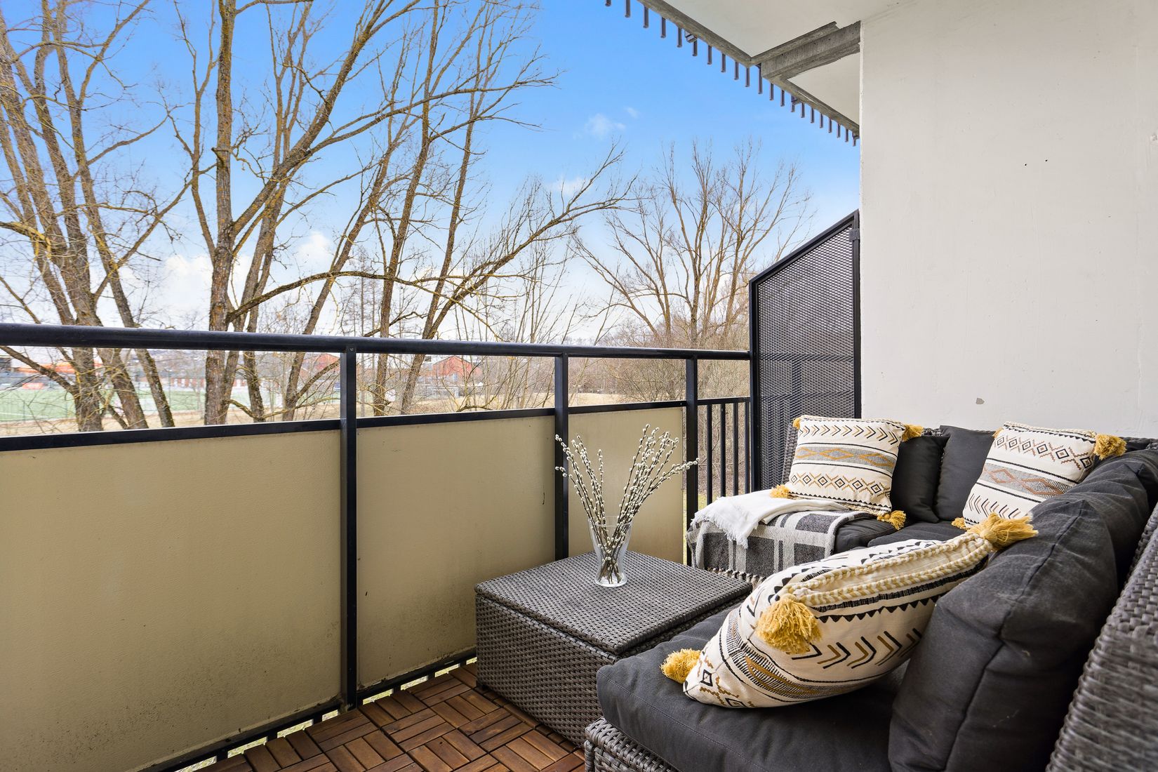 Redan i hallen märks det att detta är ett hem att trivas i. Här erbjuds ett stilrent, nyrenoverat och helkaklat badrum, ett rofyllt sovrum med utgång till en solig balkong i sydvästläge perfekt för lugna eftermiddagar och spontana kaffestunder, ett kök med generösa arbetsytor och ett inbjudande vardagsrum med stora fönster som släpper in rikligt med ljus. Dessutom finns en smart planerad hall med goda förvaringsmöjligheter och en praktisk klädkammare som underlättar vardagen.