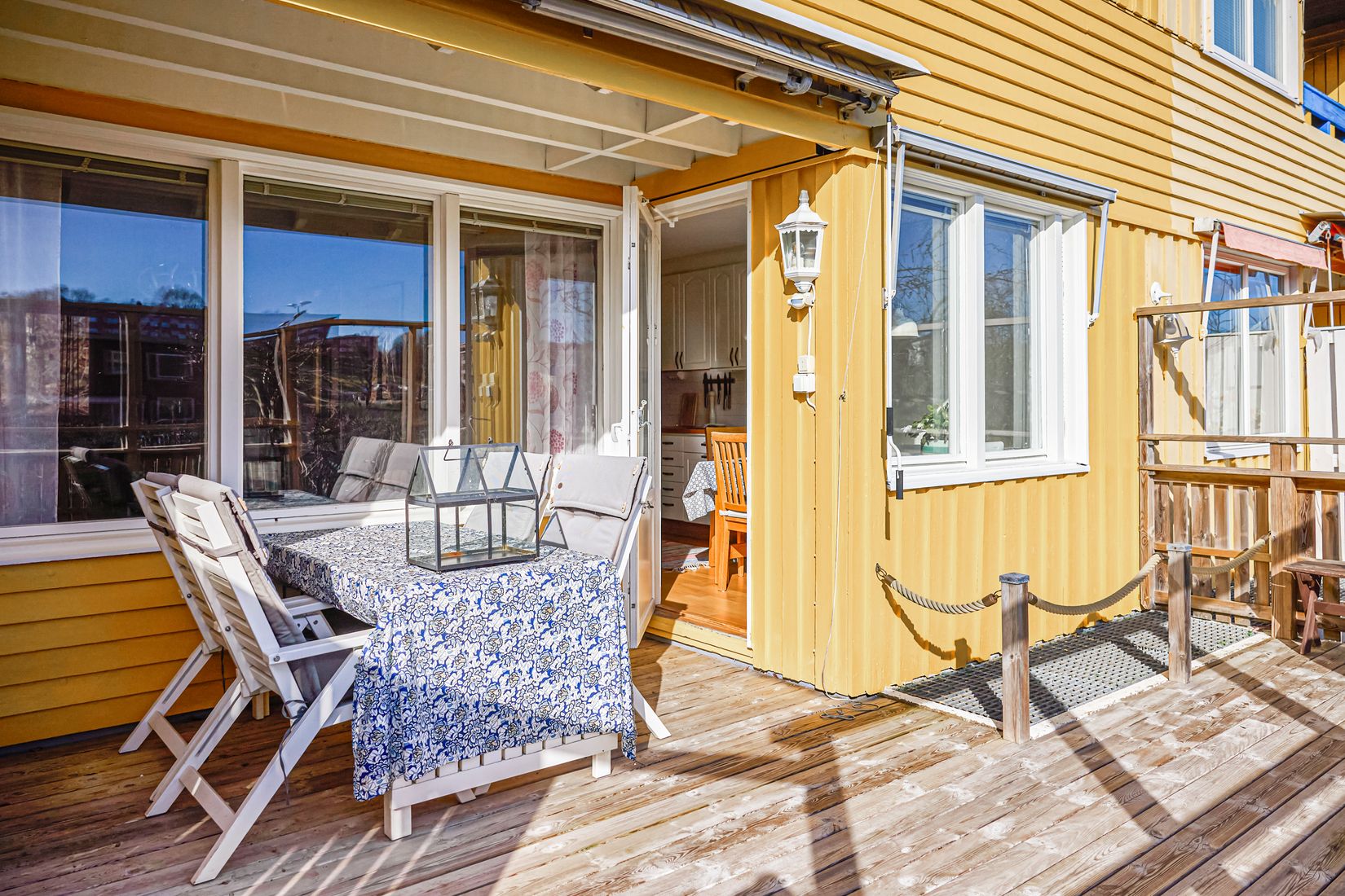 Området är mycket familjevänligt med lekplatser och förskola direkt i närheten, och skola för äldre barn nås på bara några minuters promenad. Här bor ni också med gångavstånd till vackra grönområden som Björkhagen, Stora Holm och Hisingsparken. Tuve Torg erbjuder ett bra serviceutbud och inom kort bilavstånd finns både Backaplan och Bäckebol med ett brett utbud av butiker och service.
