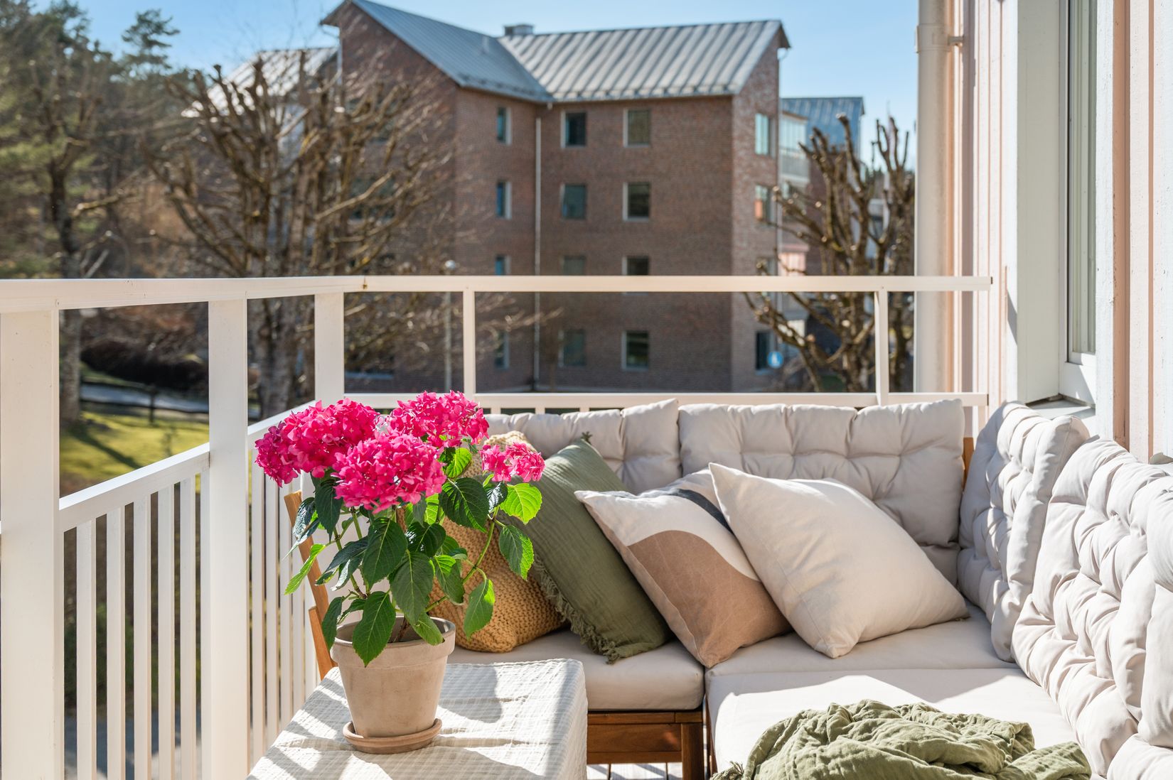 Bostadens stora balkong är i ett soldränkt sydläge där solens strålar värmer under sommaren från tidig förmiddag till sen kväll. Det är härifrån du tar dig in till denna underbara 2a där du kommer att trivas från första stund.