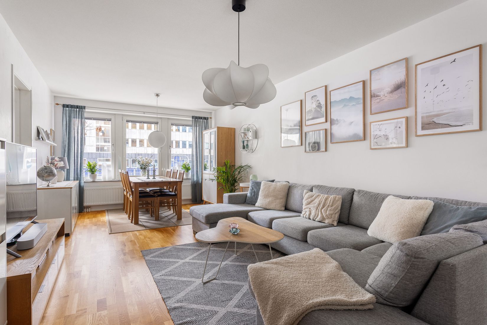 Genomgående och nyproducerad 4:a om 101 kvm med stor uteplats och radhuskänsla. Generös takhöjd och stora fönster i två väderstreck ger både ljus och rymd. Påkostade materialval där inga detaljer är lämnade åt slupen. Modern och genomtänkt planlösning med härliga sällskapsytor, kök och vardagsrum om totalt hela 40 kvm. Öppet kök från Vedum med köksmaskiner från Electrolux. Genomgående vackra parkettgolv. Tre väl tilltagna sovrum. Två badrum med påtaglig hotellkänsla varav det ena med tvättmaskin och torktumlare från Electrolux. Garage och förråd i fastigheten. Perfekt boende för såväl familjen som det kräsna paret. Välkommen hem!