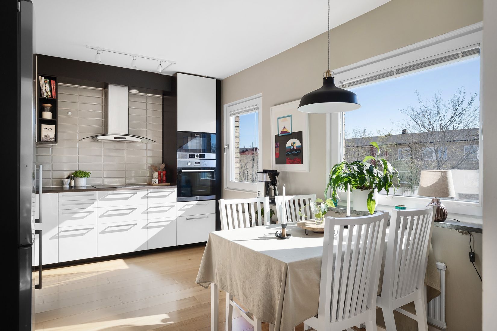 Bostaden välkomnar med en ljus och inbjudande hall med goda förvaringsmöjligheter. Vidare in finner du ett modernt kök med gott om arbetsytor och plats för matgrupp intill fönster. Vardagsrummet är rymligt och lättmöblerat med direkt access till den inglasade balkongen som förlänger säsongen och erbjuder sol större delen av dagen. Lägenheten disponeras med två sovrum i bra storlek, där det ena även har tillgång till en praktisk klädkammare som kan nyttjas som arbetsplats eller extra förvaring. Badrummet är fräscht och funktionellt med god komfort för vardagens behov.