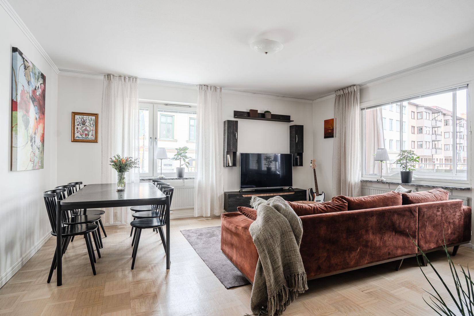 Som hörnlägenhet erbjuds ett generöst ljusinsläpp från två väderstreck som skapar en luftig och trivsam atmosfär genom hela hemmet. Bostaden välkomnar med en rymlig hall med goda avhängnings- och förvaringsmöjligheter. Det stora, fullt utrustade köket erbjuder gott om plats för både familj och gäster, medan vardagsrummet är flexibelt och rymmer såväl en stor soffgrupp som en extra matplats, perfekt för både avkoppling och sociala tillställningar.
