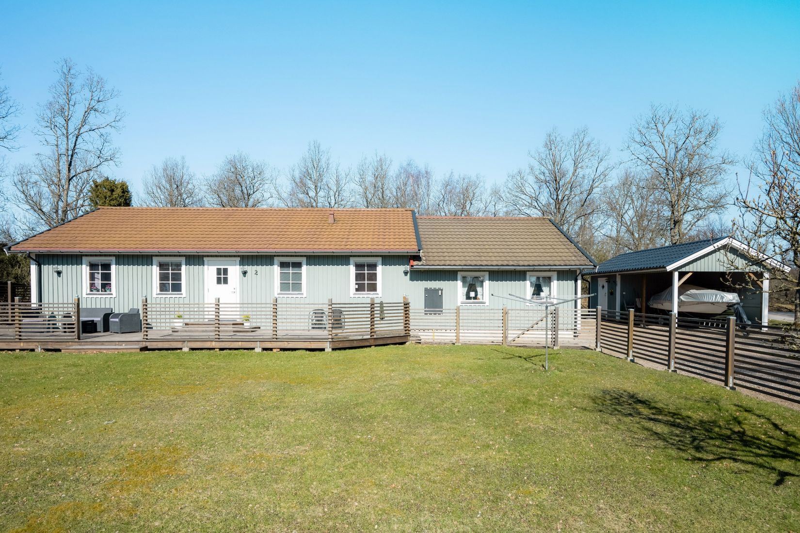 Tomten är inhägnad, vilket ger både trygghet och fina möjligheter för barn eller husdjur att röra sig fritt. På fastigheten finns även carport och förråd som ger gott om förvaring och skydd för bilen.