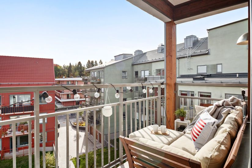 Högst upp och gavel med stor balkong om 6 kvm i soligt söderläge. Fönster i två väderstreck. Utmärkt planlösning med allrum som får ett härligt ljusinsläpp, sovalkov, smakfullt kök från Marbodal med full maskinell utrustning från Siemens. Stilrent, helkaklat badrum med skön golvvärme och tvättmaskin kombinerad med torktumlare.