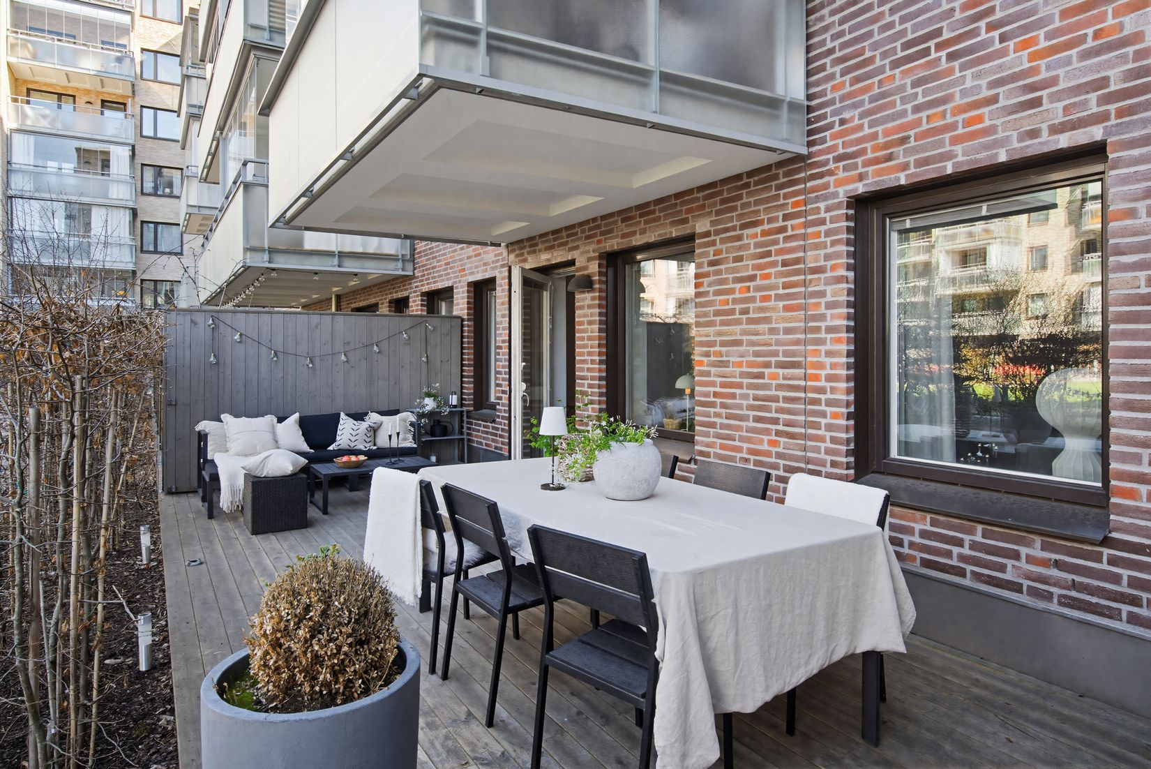 Bostaden är smart disponerad med ytor som nyttjas optimalt. Den rymliga, trallbelagda uteplatsen blir en naturlig förlängning av hemmet under årets varmare månader – perfekt för avkoppling i solen eller middagar med vänner och familj. Härifrån skymtar Fyrisåns glittrande vatten med båtar som stillsamt passerar.