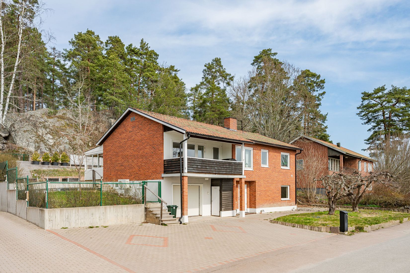 Baksidan av huset är en privat oas med en stor, trallad uteplats som ligger vackert upphöjd mot berget. Här njuter du av solens strålar från morgon till kväll i en skyddad och avkopplande miljö. Den inglasade altanen blir en naturlig samlingsplats för familj och vänner, och det inbjudande spabadet gör att du kan koppla av året om.
