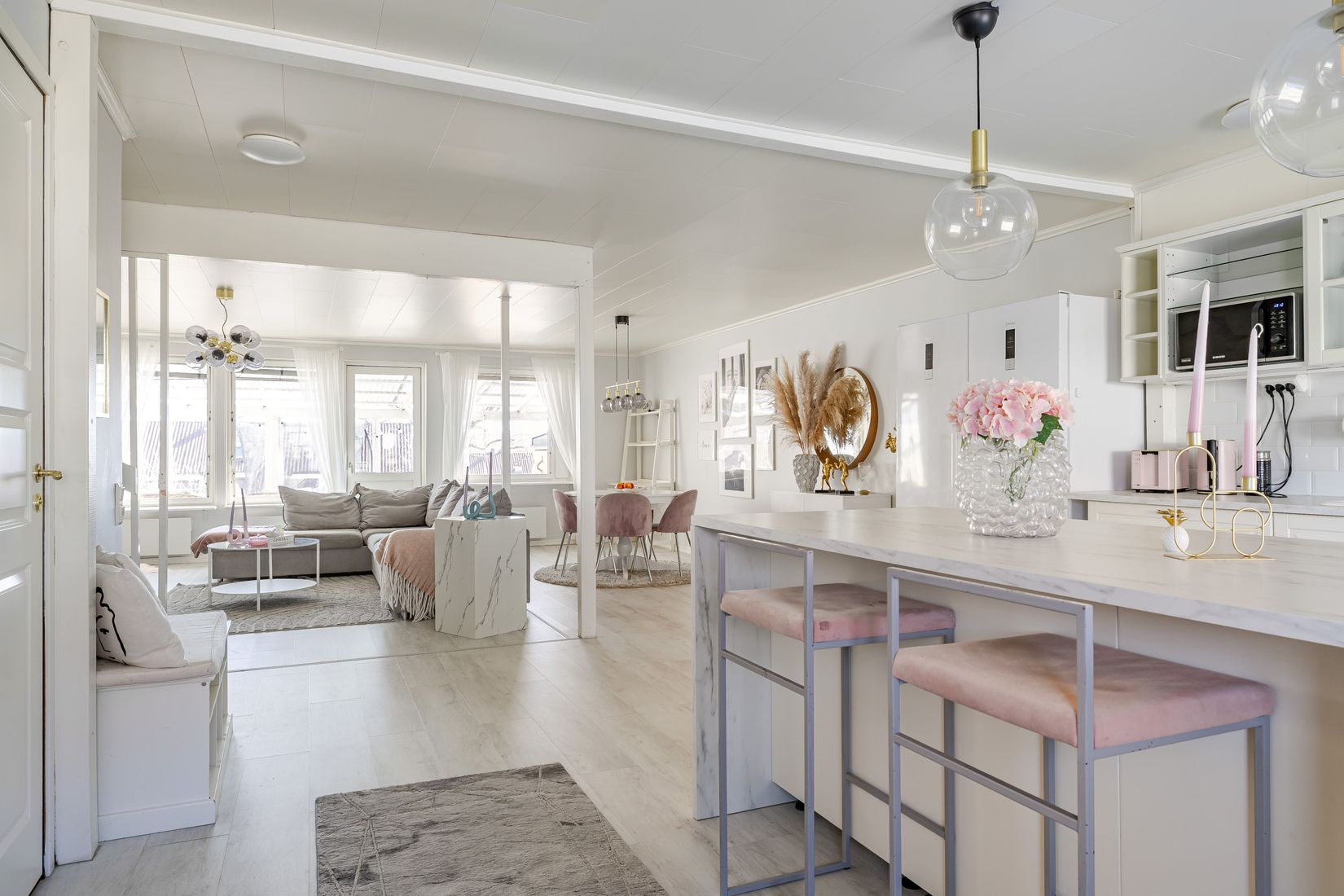 Välkomna till Furuvägen 37! Entréplanet erbjuder en ljus och öppen planlösning mellan kök och vardagsrum och har generösa sällskapsytor såväl ute som inne. Från vardagsrummet nås en takad altan som delvis är inglasad. Här finns även en tvättstuga och en gästtoalett. En trappa upp finns tre sovrum samt ett badrum.