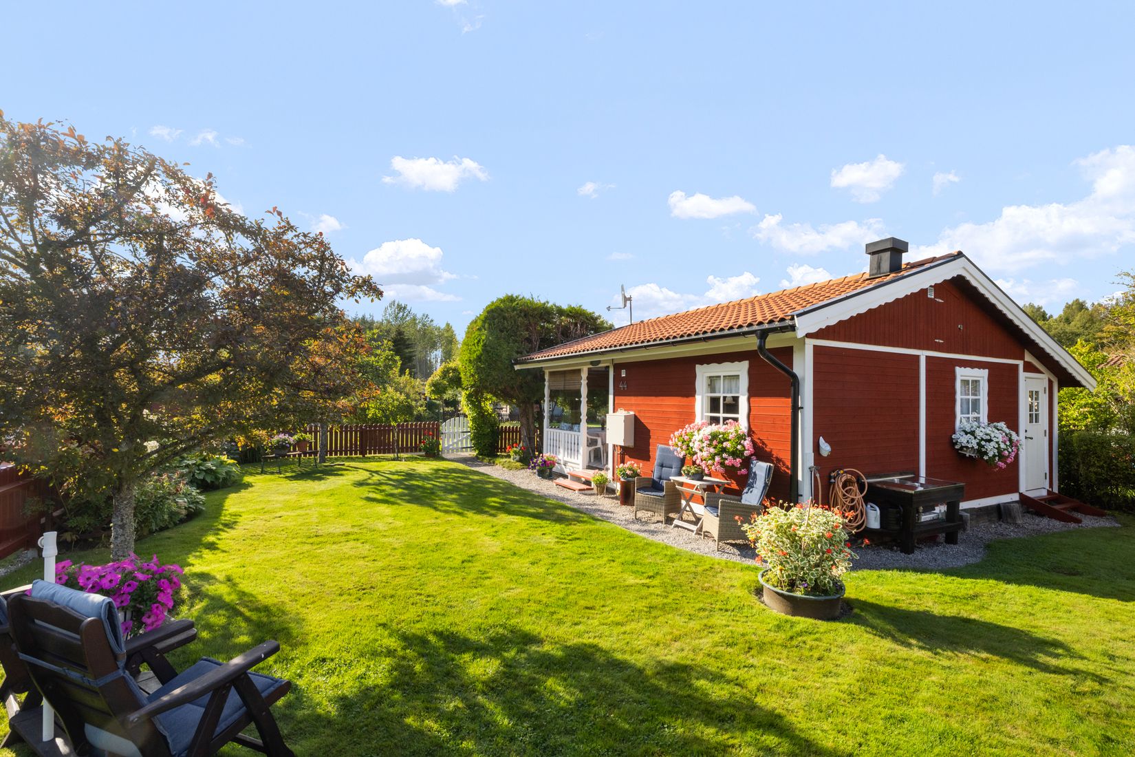 Välkommen till Ribacken 44, en ombonad och pedantskött oas i hjärtat av en grönskande stugby. Här möts du av en plats där varje detalj är väl omhändertagen, med en trivsam och inbjudande känsla som gör det lätt att koppla av och bara vara.