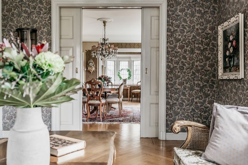 Detta är troligen unikt och öppnar möjligheten att forma ett hem som blir helt ensamt i sitt slag. Över husets 230 kvm och sex rum vilar ännu 20-talets elegans med en naturlig patina från åren som gått. Huset är kulturminnesmärkt.
