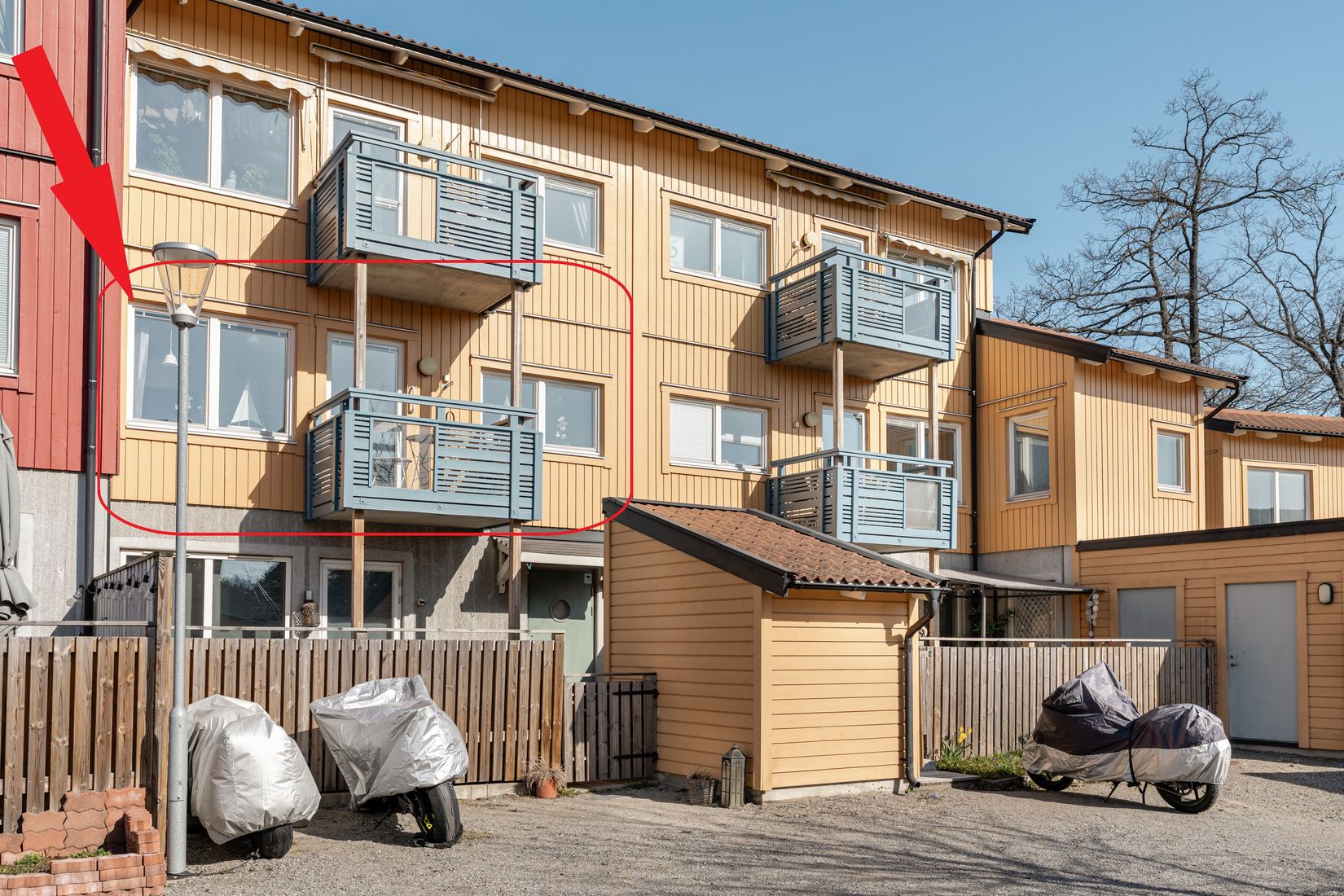 Här bor du i en ljus och luftig lägenhet med radhuskänsla.