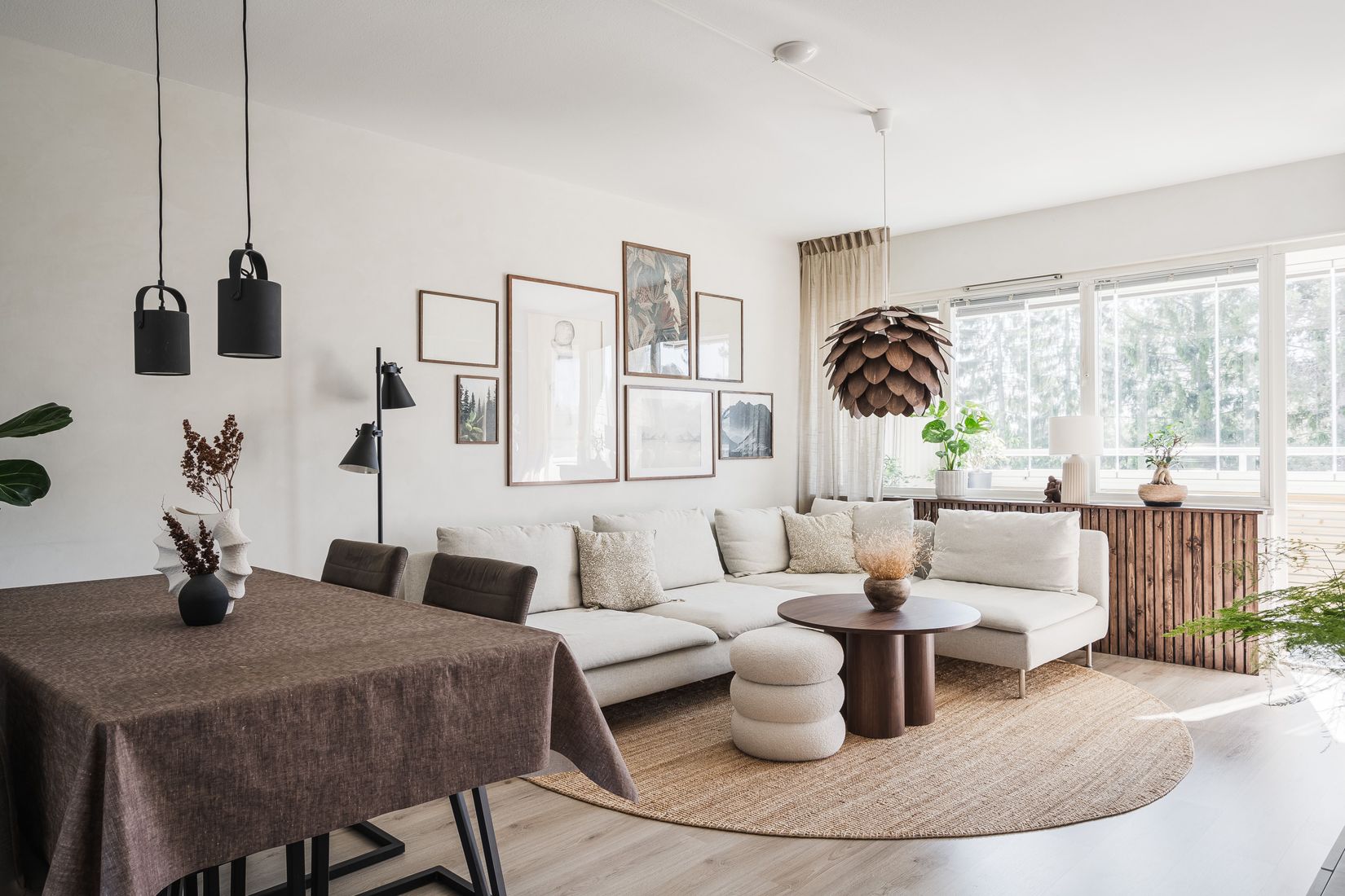 Här möts du av en välplanerad och rymlig bostad som erbjuder komfort i varje detalj. Direkt vid entrén välkomnas du av en stilrent laminatgolv som löper vidare in i köket, vardagsrummet och sovrummen. Via hallen når du även lägenhetens praktiska klädkammare/förråd som även går att nyttja som kontor eller mindre sovrum. Lägenhetens luftiga och stora planlösning skapar en härligt social atmosfär – idealiskt för både avkoppling och middagar med vänner.