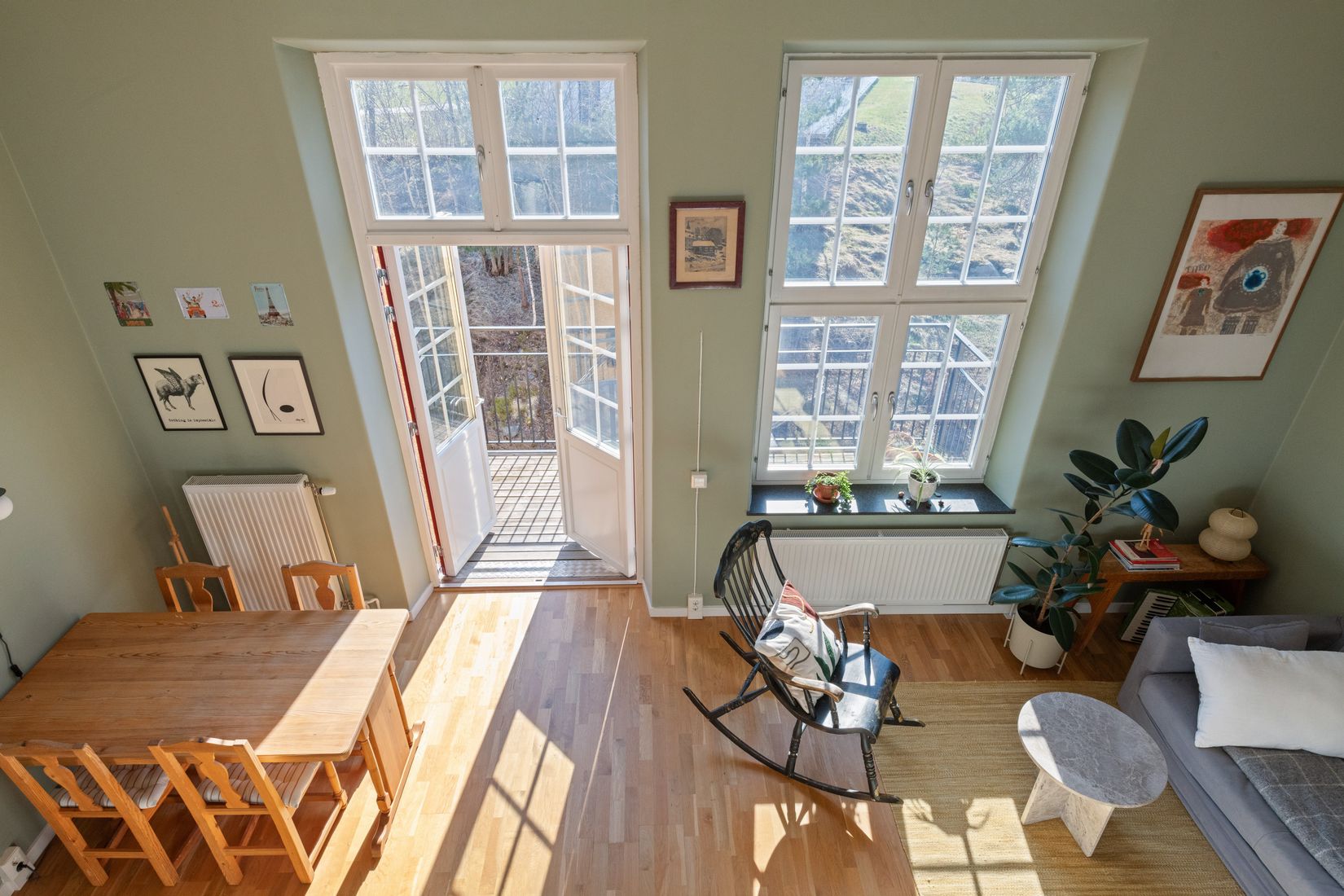 Kliv in i en lägenhet där varje detalj är noga planerad för både komfort och trivsel. De stora fönstren släpper in rikligt med dagsljus och förstärker känslan av rymd i det öppna vardagsrummet som smälter samman med det moderna köket – en naturlig plats för både vardagsliv och fest.