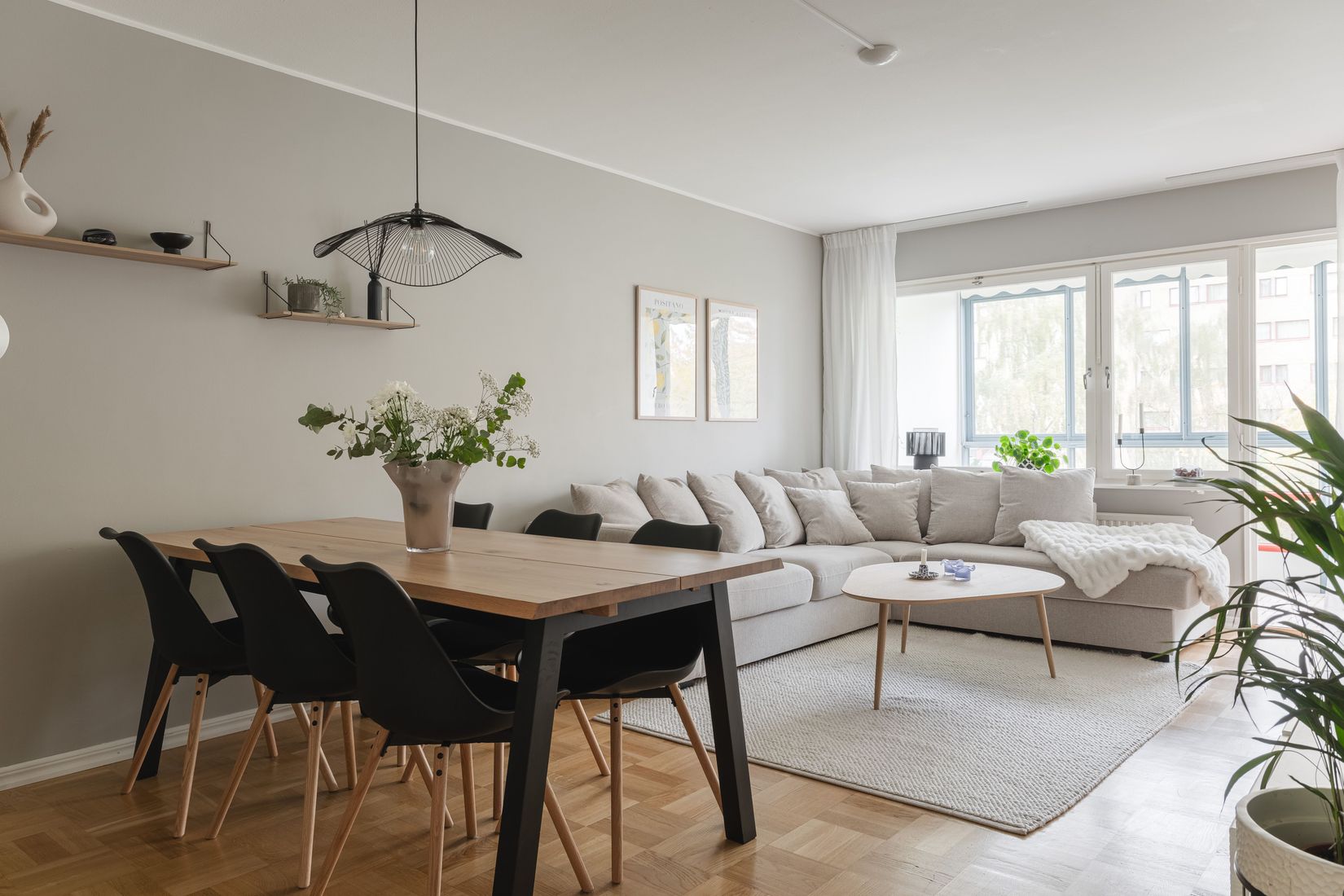 På våning 2 och med fri utsikt mot grönskande omgivningar ligger denna smakfullt renoverade trea – en bostad där varje kvadratmeter är genomtänkt och trivseln hög. Här bor du med ett härligt ljusinsläpp och en rofylld vy över naturen utanför.