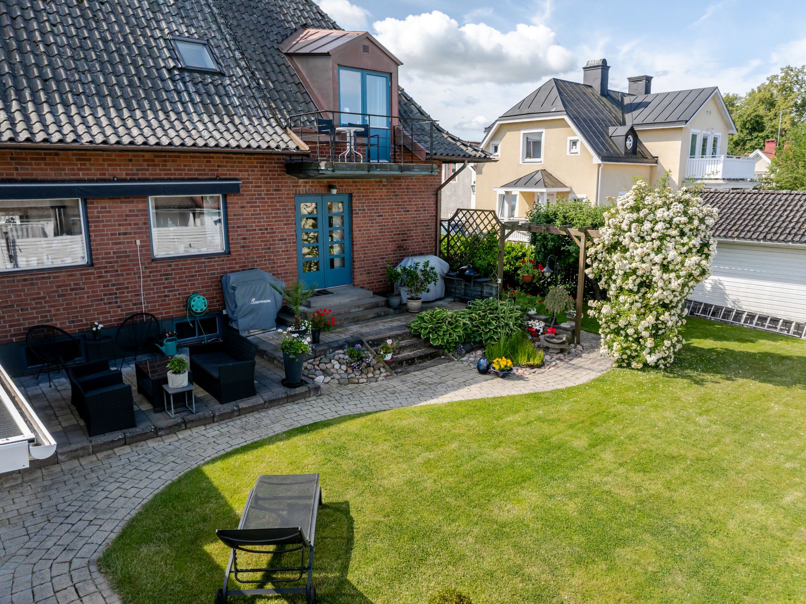 Välkommen till ett unikt och anrikt arkitektritat innerstadshus med en alldeles speciell historia - mitt inne i centrala Vadstena - på Rännevallsgatan 7. Här har en av Vadstenas mest kända konstnärer och arkitekt - Karl-Göran Eklund levt och verkat. Huset är ritat, konstruerat och byggt tillsammans med byggmästare Roxberg. En annan känd byggnad som han varit med och ritat är exempelvis Birgittasystrarnas Klosterkyrka och otaliga är de vackra avbildningar han har gjort av Vadstenas historiska byggnader. Man kan känna tidens vingslag när man går upp i ateljén på övervåningen - ett rum med fantastiska takfönster som ger rummet känslan av att vara ute fast man är inne. Huset är unikt i sitt slag med en fantastisk trädgård med prunkande växtlighet, spabad, inglasat uterum, pergola och uteplats med markis. Vidbyggt garage för en bil med fjärrport och parkeringsplats för ytterligare bil framför garaget.