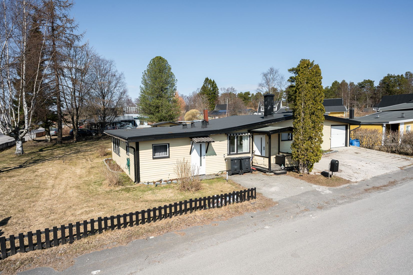 Den fina tomten ger gott om utrymme för både lek, avkoppling och trädgårdsdrömmar. Här finns möjligheter att skapa din egen oas, oavsett om du önskar odlingar, uteplats eller plats för barnens aktiviteter.