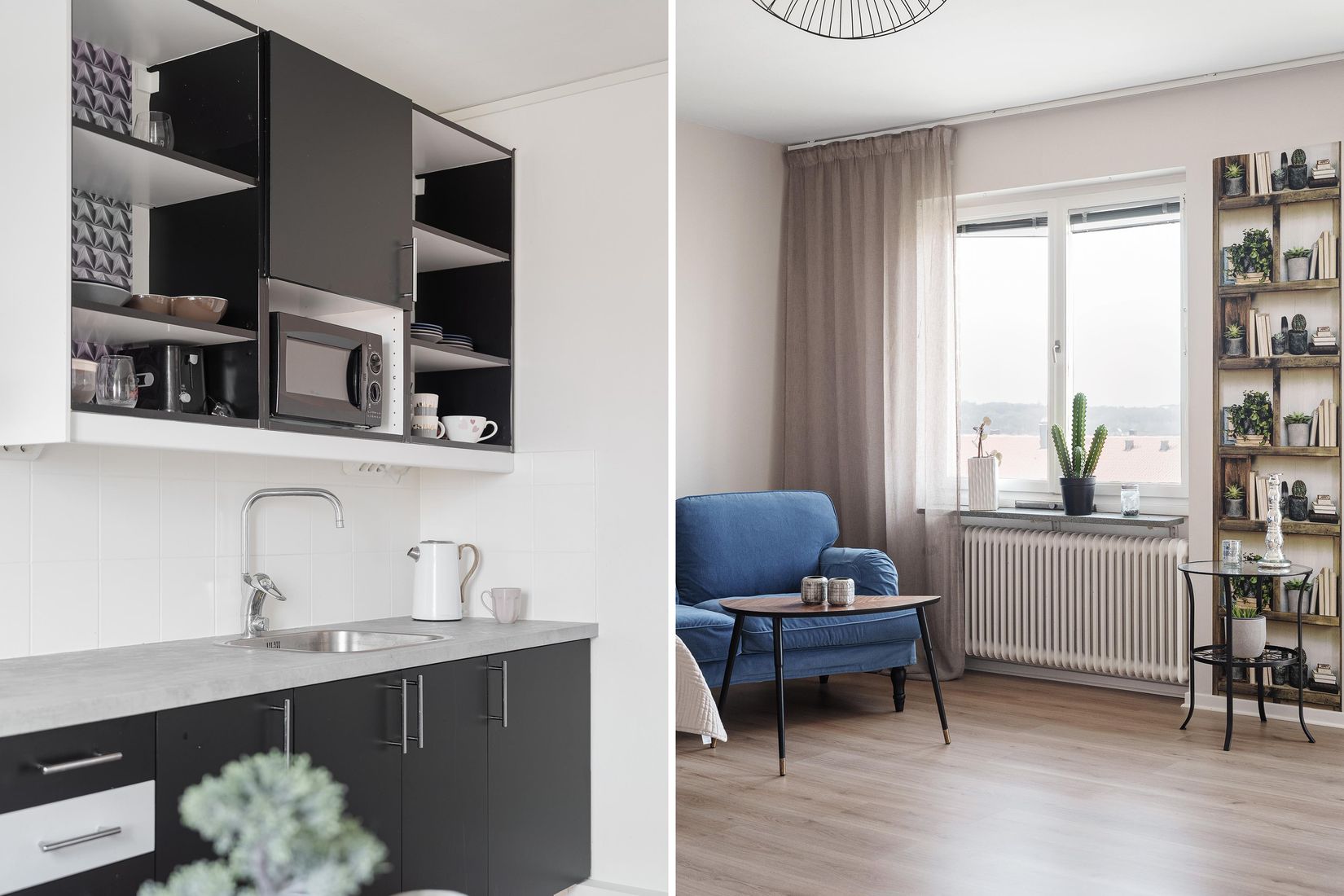 Här får du ett ljust och luftigt rum med fransk balkong som släpper in massor av dagsljus. Det är möjligt att få till både en skön soffhörna och en sovplats - detta rummet är nyrenoverat. Köket har plats för matbord, så du kan bjuda över kompisar eller bara njuta av en lugn middag hemma. I köket kan du även göra dig en kontors/studiehörna. I hallen finns bra förvaring med nyare garderober (alltid ett plus!), och badrummet är helkaklat från 2021 med vägghängd toalettstol med dusch med glasväggar. Fiber ingår i avgiften!