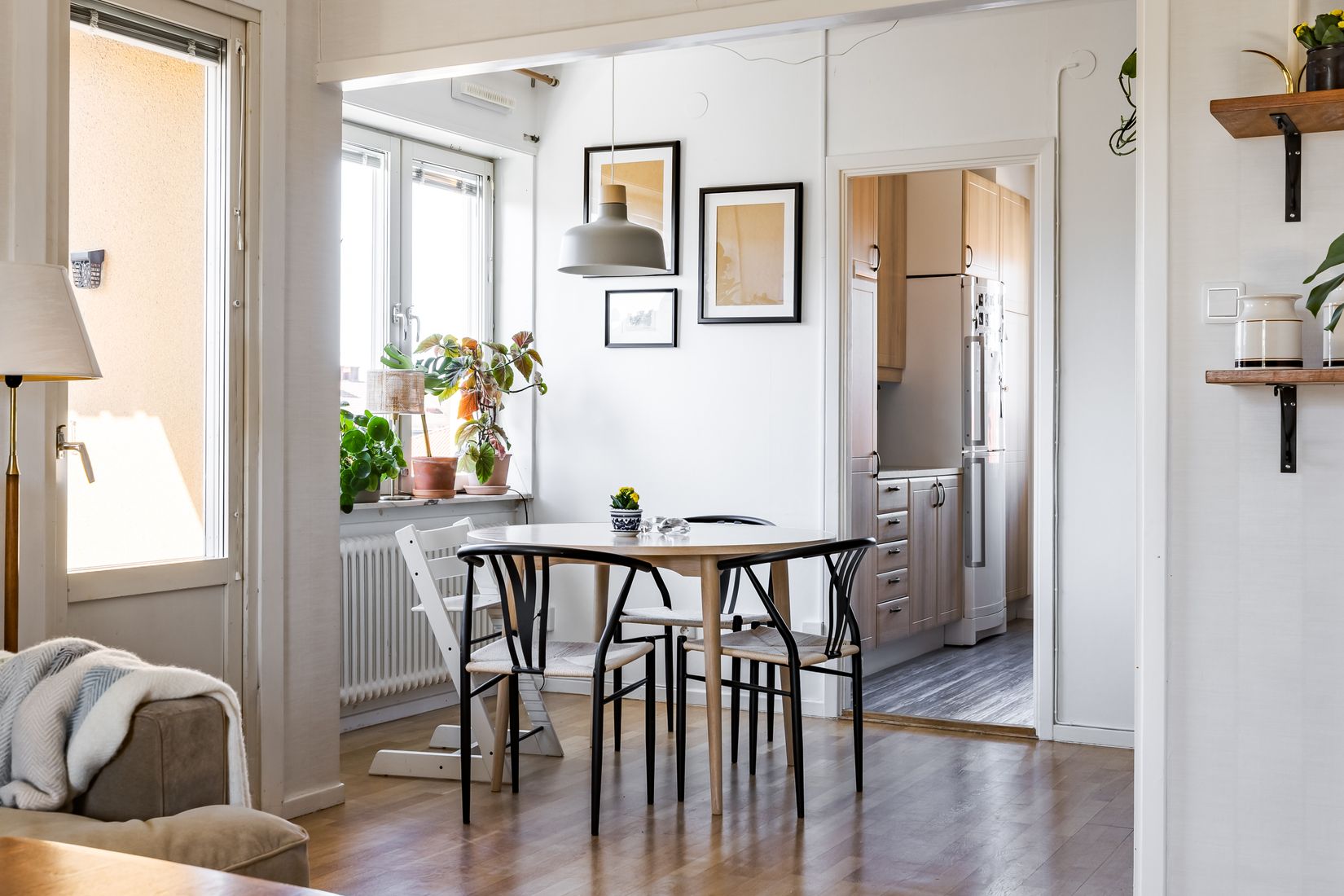 Bostaden har genomgående fina ytskikt i stilrena färger, gott om plats för sociala stunder i och med den smarta och tilltalande planlösningen.