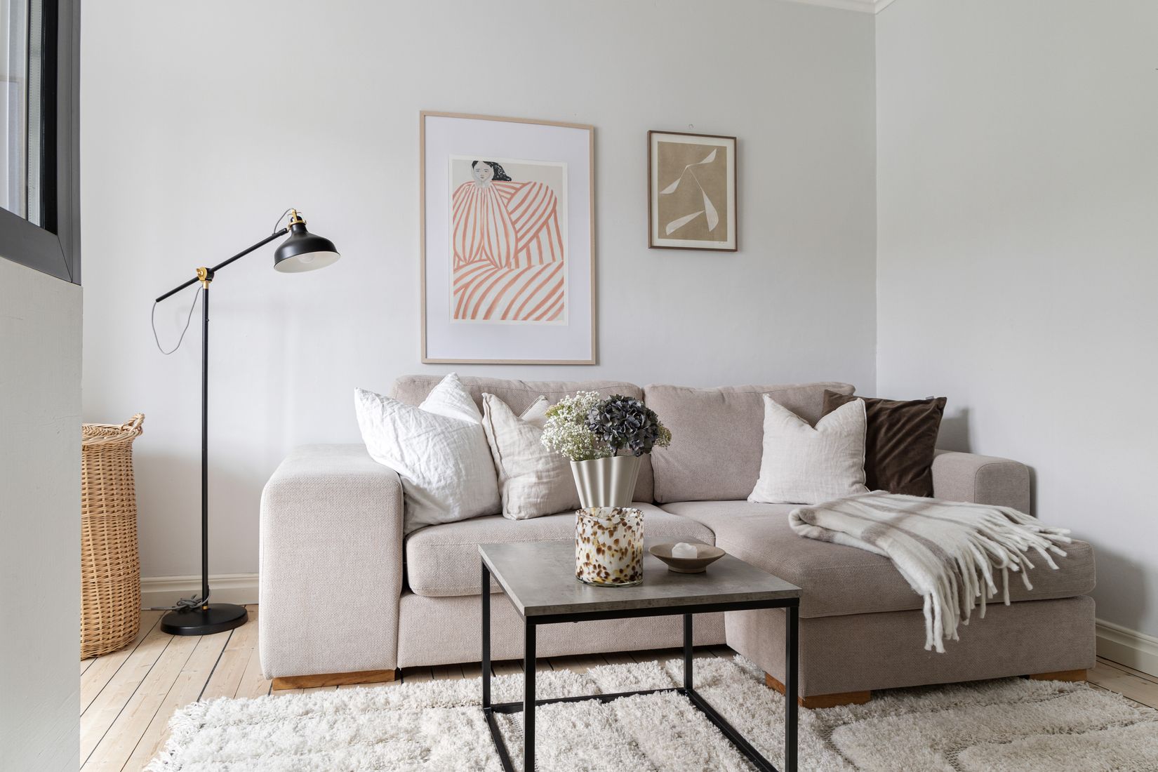 Här erbjuds en genomtänkt planlösning där varje kvadratmeter nyttjas optimalt. Bostaden har ett generöst allrum med plats för både säng, soffgrupp och arbetsyta, samtidigt som de stora fönsterpartierna i två väderstreck skapar ett härligt ljusinsläpp och en luftig känsla. I den avdelade sovalkoven får det plats en 160cm säng.