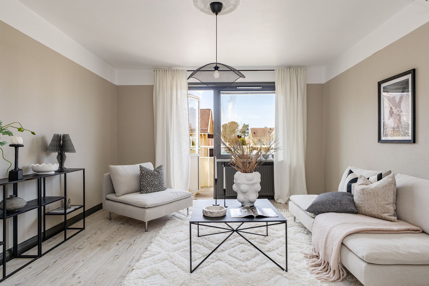 Köket är stilrent och funktionellt med plats för en mindre matgrupp - perfekt för både vardagsmiddagar och mysiga helgfrukostar. Intill ligger ett flexibelt rum som kan användas som sovrum eller matsal, helt utifrån dina behov och önskemål. Det rymliga vardagsrummet blir bostadens självklara samlingspunkt, med gott om plats för både soffgrupp och matplats för den som önskar. Härifrån kliver du ut på den härliga balkongen i soligt sydvästläge som blir en given favoritplats där du kan njuta av eftermiddagssol och ljumma sommarkvällar. Vidare finner du badrummet som är helkaklat, dessutom förberett för tvättmaskin för extra bekvämlighet i vardagen.