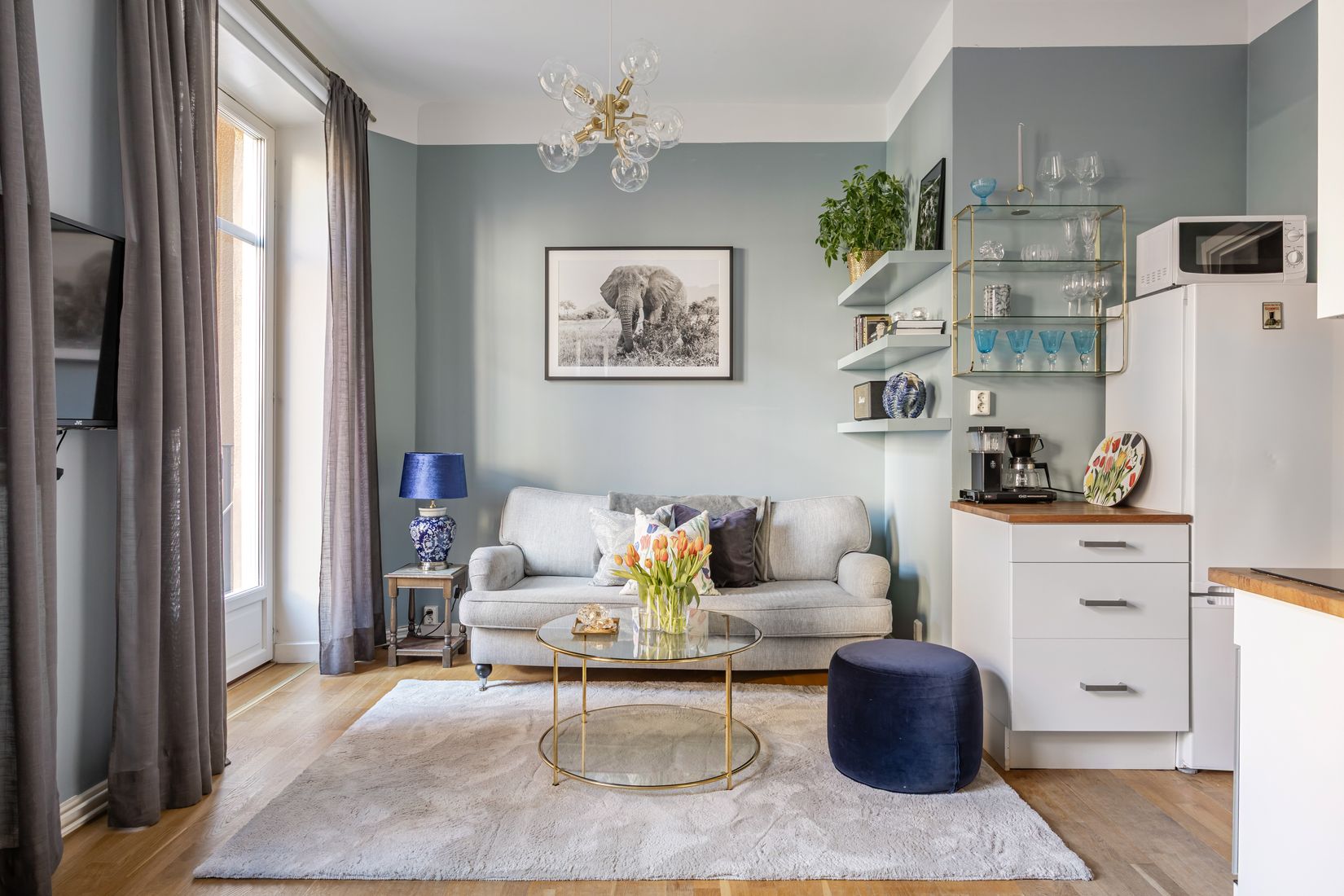 Lägenheten erbjuder ett trivsamt och lättmöblerat boende med ett fullt utrustat kök centrerat i bostaden samt ett fint ljusinsläpp från fönster i fil med utsikt mot innergård. Badrummet är helkaklat och sängen placerar du med enkelhet i sovalkoven. Balkongen blir en naturlig förlängning av vardagsrummet och ger en extra dimension av ljusinsläpp.