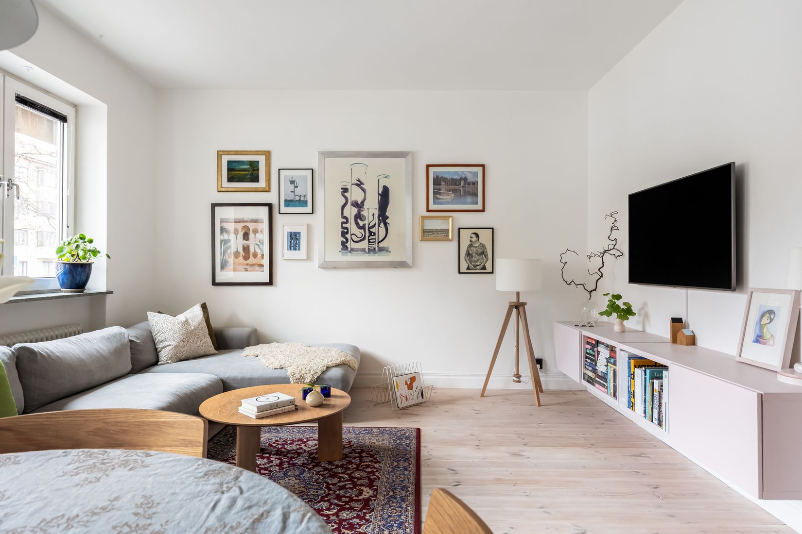 Hos HSB-föreningen Kastanjen möts vi av en grönskande gård och bakom den charmiga tegelfasaden på Lantmannagatan 6C, finner vi denna genomgående tvårummare om 46 kvm. Bostaden bjuder på charm från byggåret så som brädgolv, ett fint delvis renoverat originalkök och ett gårdsvänt sovrum.