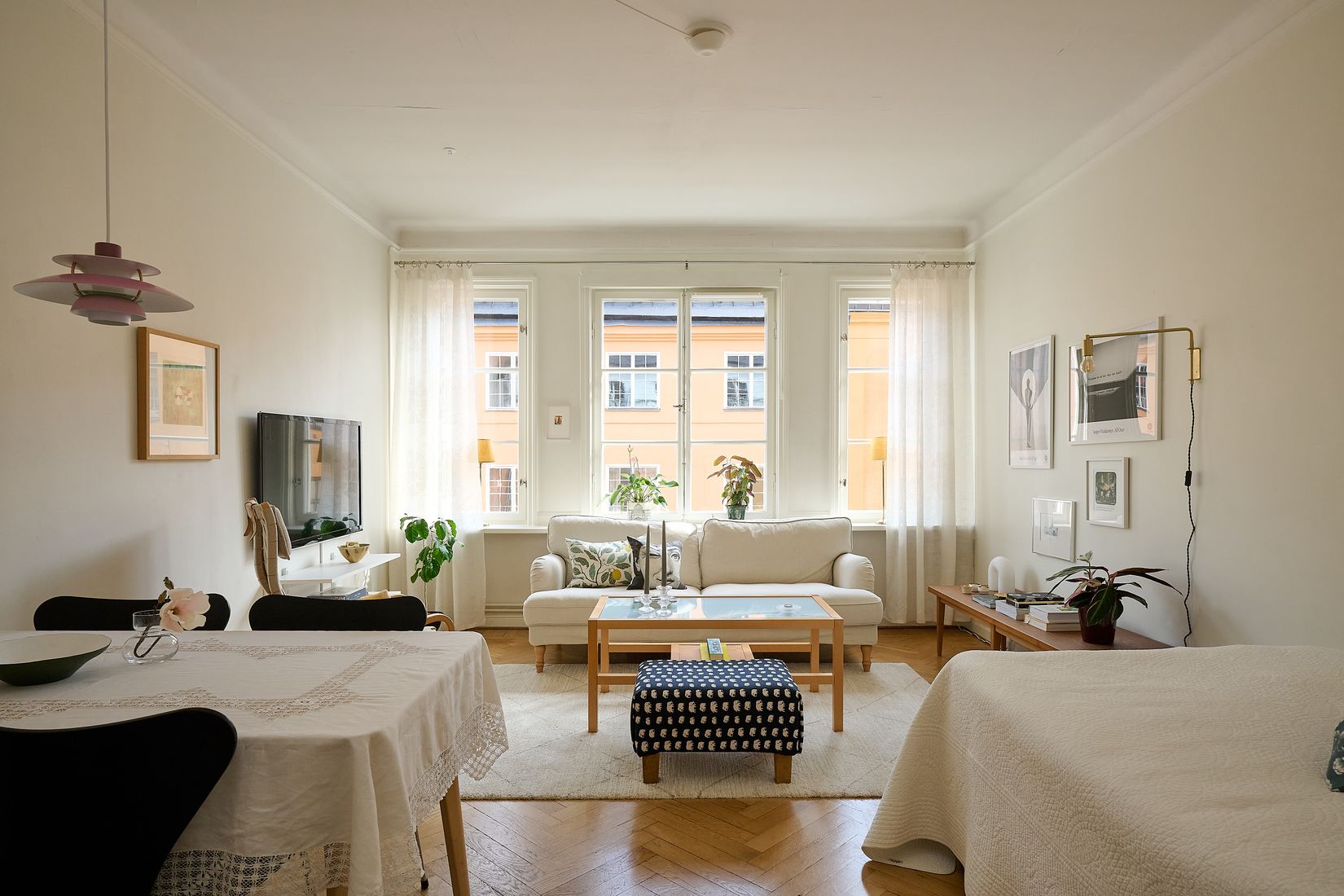 Välkommen till en trivsam etta där ljuset flödar genom ett vackert burspråk med spröjsade originalfönster. Lägenheten är belägen i en välbevarad fastighet från 1920-talet och erbjuder en härlig kombination av rymd, ljus och tidstypisk karaktär. Allrummet upplevs som både luftigt och lätt att möblera tack vare den generösa takhöjden, samtidigt som burspråket ger rummet en unik och öppen karaktär som förstorar rummet. Planlösningen är smart utformad med en praktisk kokvrå samt ett stilrent badrum med dusch. Bostaden har kvar sin ursprungliga planlösning och präglas av flera bevarade detaljer från byggåret, såsom vacker fiskbensparkett, spegeldörrar, klassiska listverk och goda förvaringsmöjligheter.