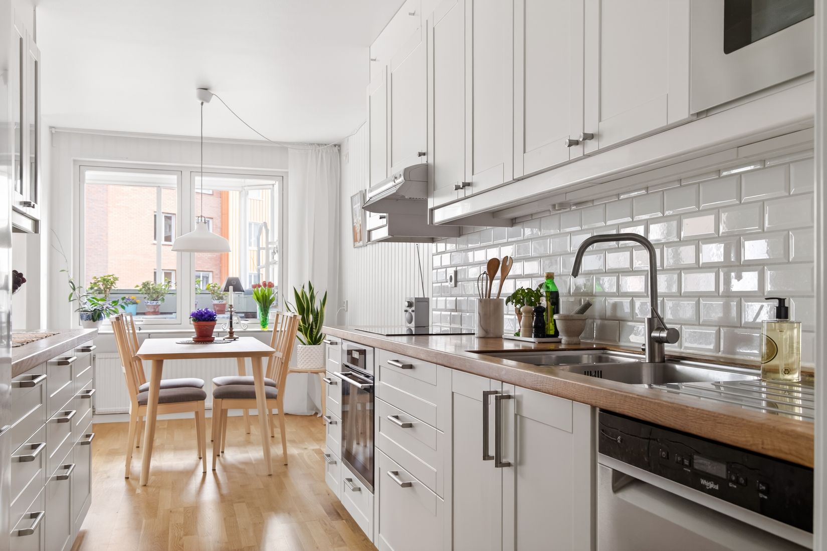 Välkommen till en bostad där varje kvadratmeter andas ljus och rymd. Hjärtat i hemmet är det stora, luftiga vardagsrummet som genom sin halvöppna planlösning mot köket skapar en perfekt social yta för både vardagsmys och sena middagar. Köket är lika hemtrevligt som praktiskt, med generösa förvaringsmöjligheter och en naturlig matplats vid fönstret där familjen kan samlas. Från vardagsrummet kliver du ut på den rymliga, inglasade balkongen i bästa solläge. Här förlängs säsongen från tidig vår till sen höst – en privat oas med plats för både loungemöbler och dina favoritväxter. De två sovrummen är välplanerade och erbjuder utmärkt förvaring, vilket kompletteras av en rymlig klädkammare och ett externt källarförråd. Det helkaklade badrummet med badkar ger en touch av vardagslyx. Ett komplett hem för dig som ställer krav på både funktion och estetik!