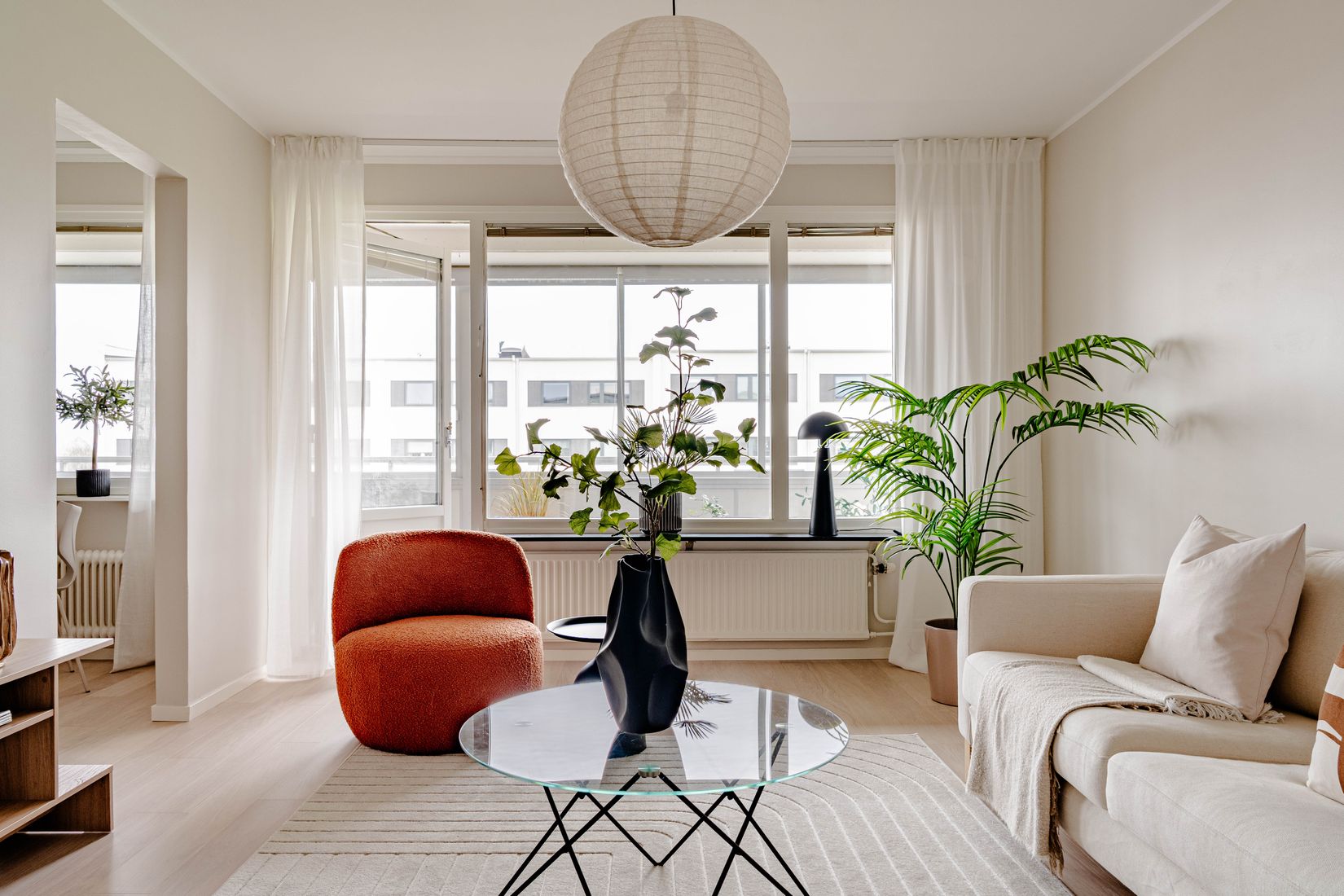 Bostaden erbjuder en genomtänkt planlösning där varje kvadratmeter nyttjas effektivt. Redan vid entrén möts du av ljusa ytskikt och en röd tråd som löper genom hela hemmet. Köket är smakfullt renoverat i tidlös design med goda arbetsytor och naturlig plats för matbord intill fönster som släpper in rikligt med ljus. Vardagsrummet är rymligt och lättmöblerat med plats för både soffgrupp och ytterligare möblemang, samtidigt som de stora fönsterpartierna bidrar till en luftig känsla. Från vardagsrummet nås även den generösa inglasade balkongen i soligt västerläge - en trivsam förlängning av bostaden med gott om plats för möblering och avkoppling i en behaglig miljö.