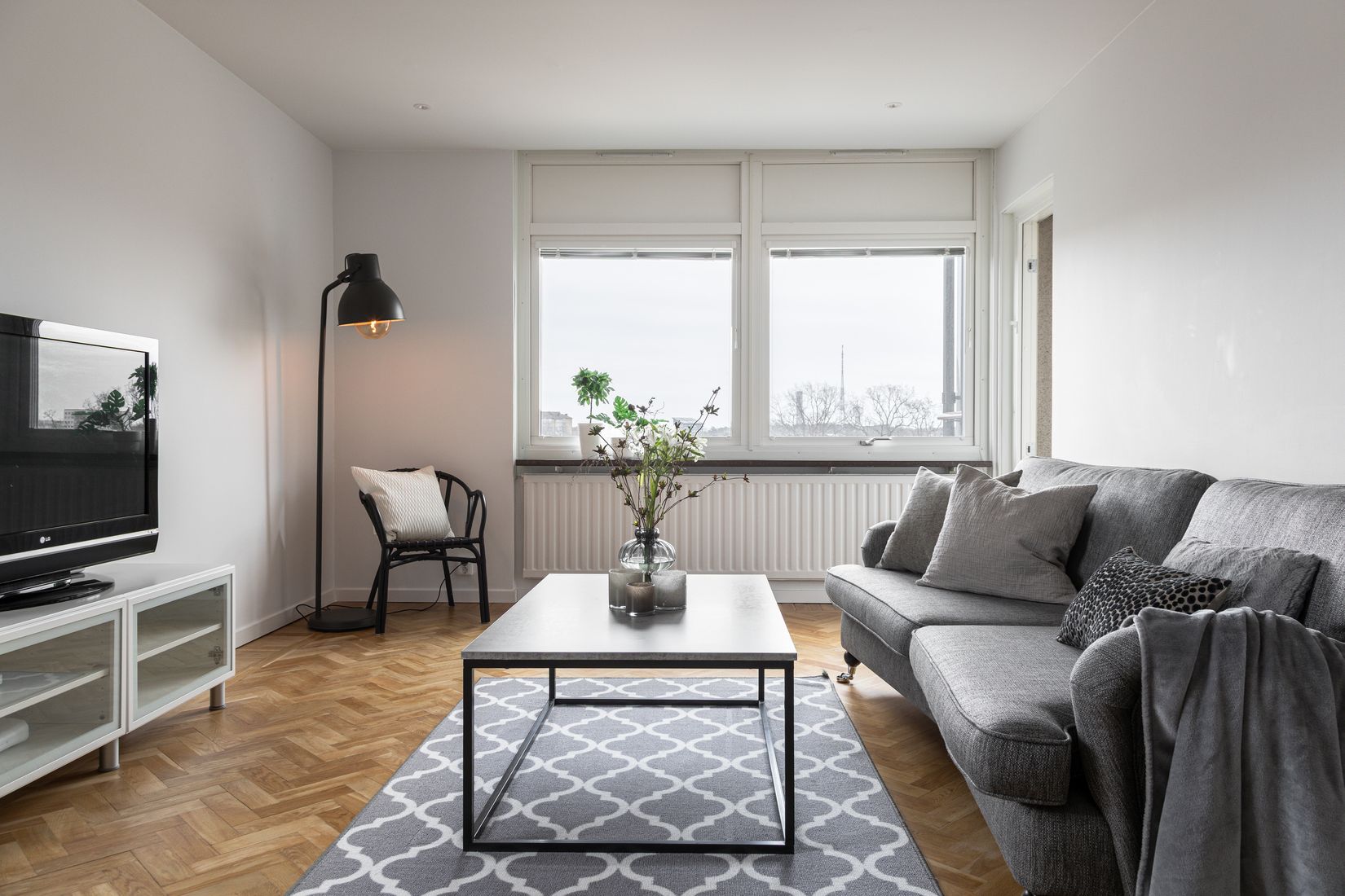 Vidare in i bostaden möts du av ett ljust och rymligt vardagsrum. Härifrån nås den stora, nybyggda inglasade balkongen i österläge. Ett extra rum som kan nyttjas stora delar av året.
